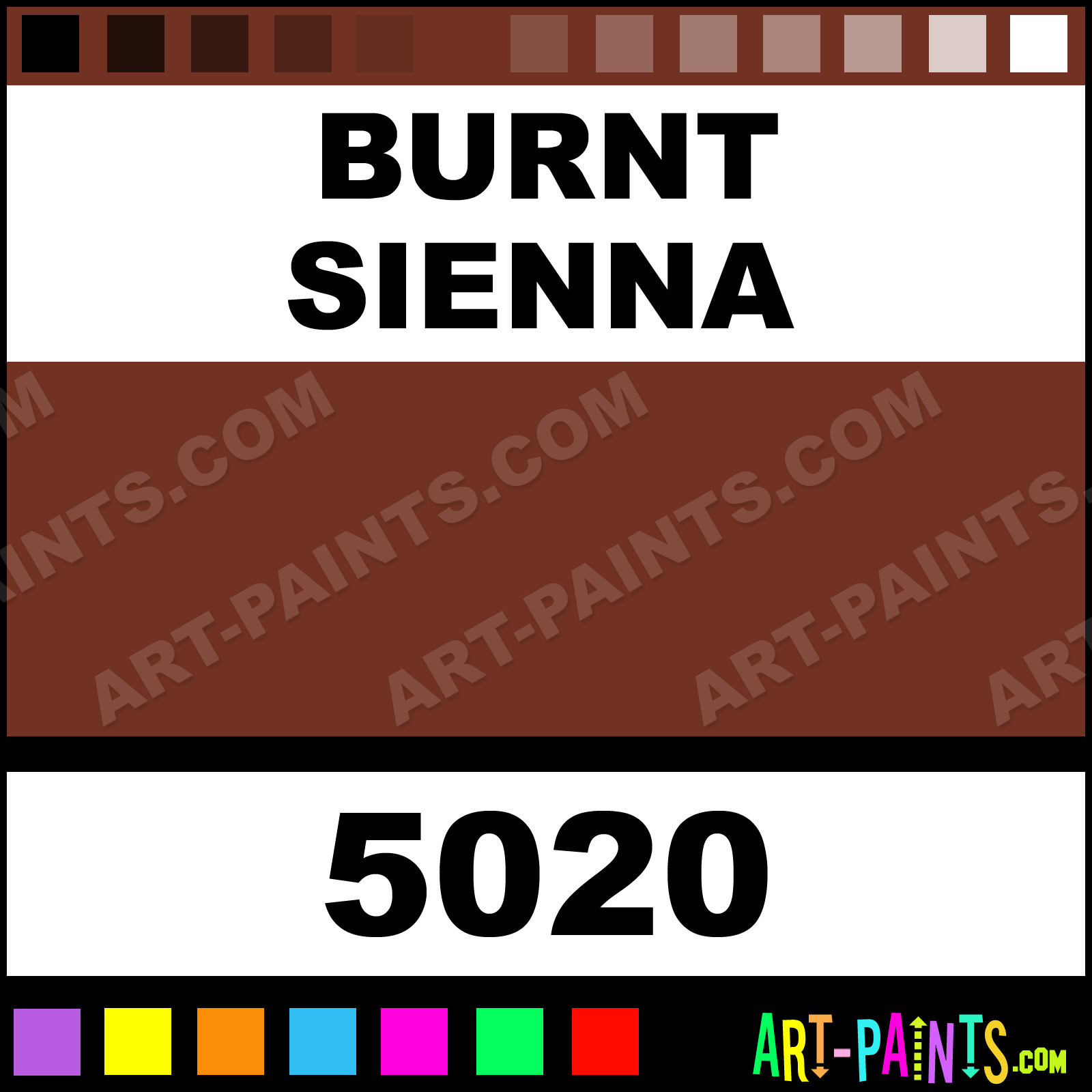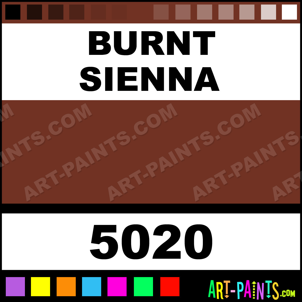 This beautiful Matte Acrylic shade is called Burnt Sienna, and comes from a company called Golden. Their product number, along with the HTML color code, RGB, and CMYK codes are listed below. This Beautiful Shade of Burnt Sienna and others can be found in the Golden Matte Art Paint Gallery! Also be sure to browse through the other wonderful Professional Color Galleries to see more of Golden Matte Acrylic Brand Paints and other Paint Manufacturers. And as always, Paint Paint Paint! -Art-Paints.com