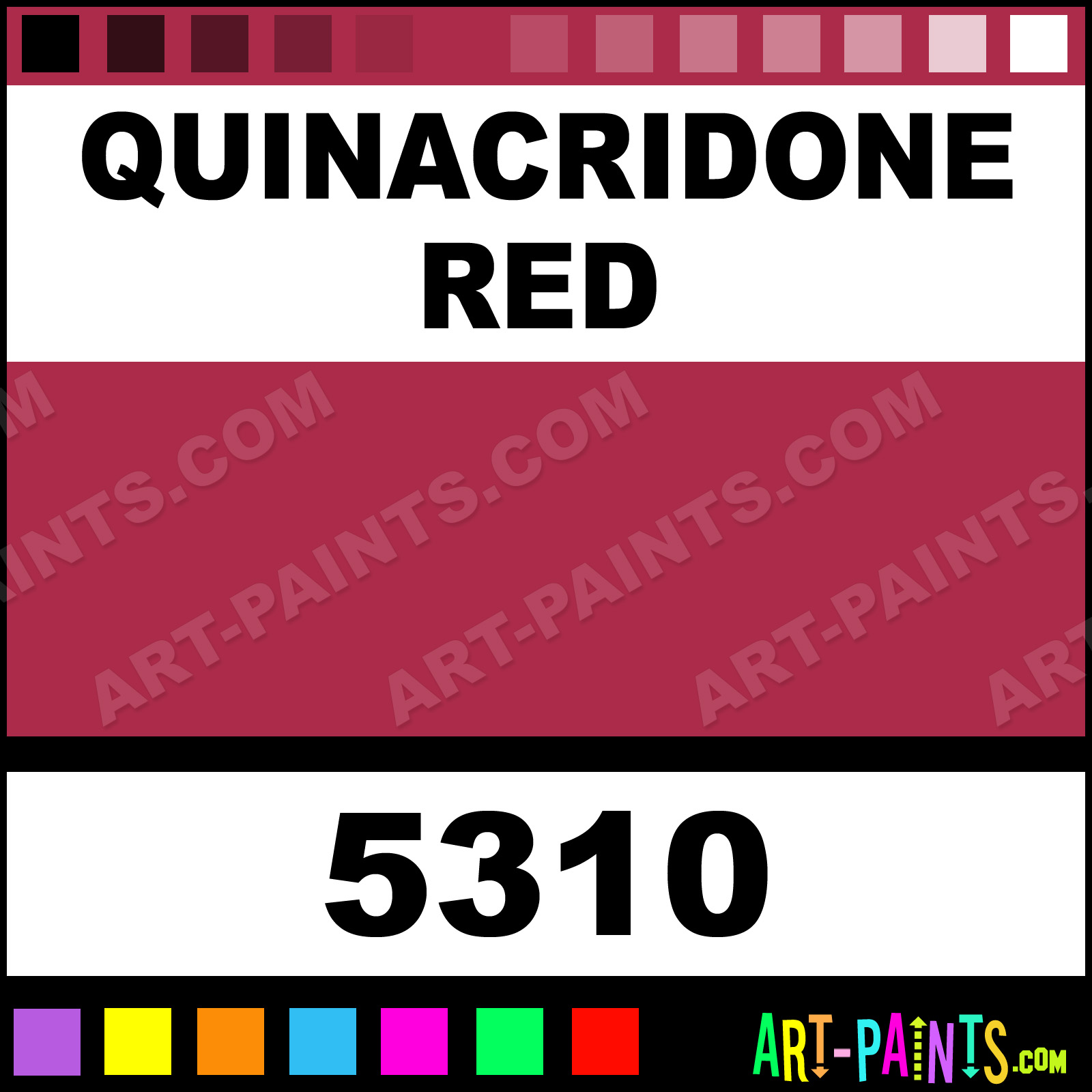 This beautiful Matte Acrylic shade is called Quinacridone Red, and comes from a company called Golden. Their product number, along with the HTML color code, RGB, and CMYK codes are listed below. This Beautiful Shade of Quinacridone Red and others can be found in the Golden Matte Art Paint Gallery! Also be sure to browse through the other wonderful Professional Color Galleries to see more of Golden Matte Acrylic Brand Paints and other Paint Manufacturers. And as always, Paint Paint Paint! -Art-Paints.com
