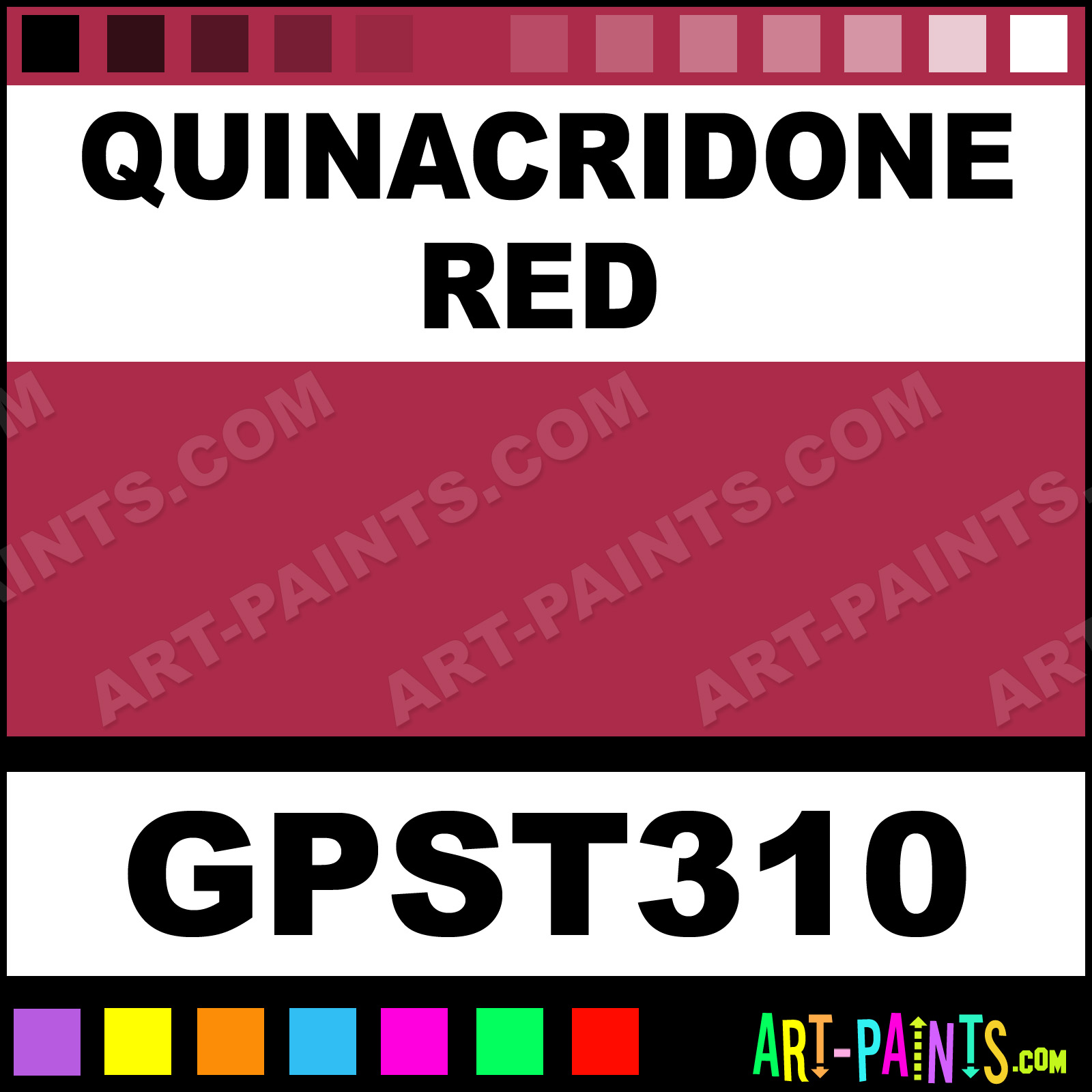 This beautiful Paste Paint Acrylic shade is called Quinacridone Red, and comes from a company called Golden. Their product number, along with the HTML color code, RGB, and CMYK codes are listed below. This Beautiful Shade of Quinacridone Red and others can be found in the Golden Paste Paint Art Paint Gallery! Also be sure to browse through the other wonderful Professional Color Galleries to see more of Golden Paste Paint Acrylic Brand Paints and other Paint Manufacturers. And as always, Paint Paint Paint! -Art-Paints.com