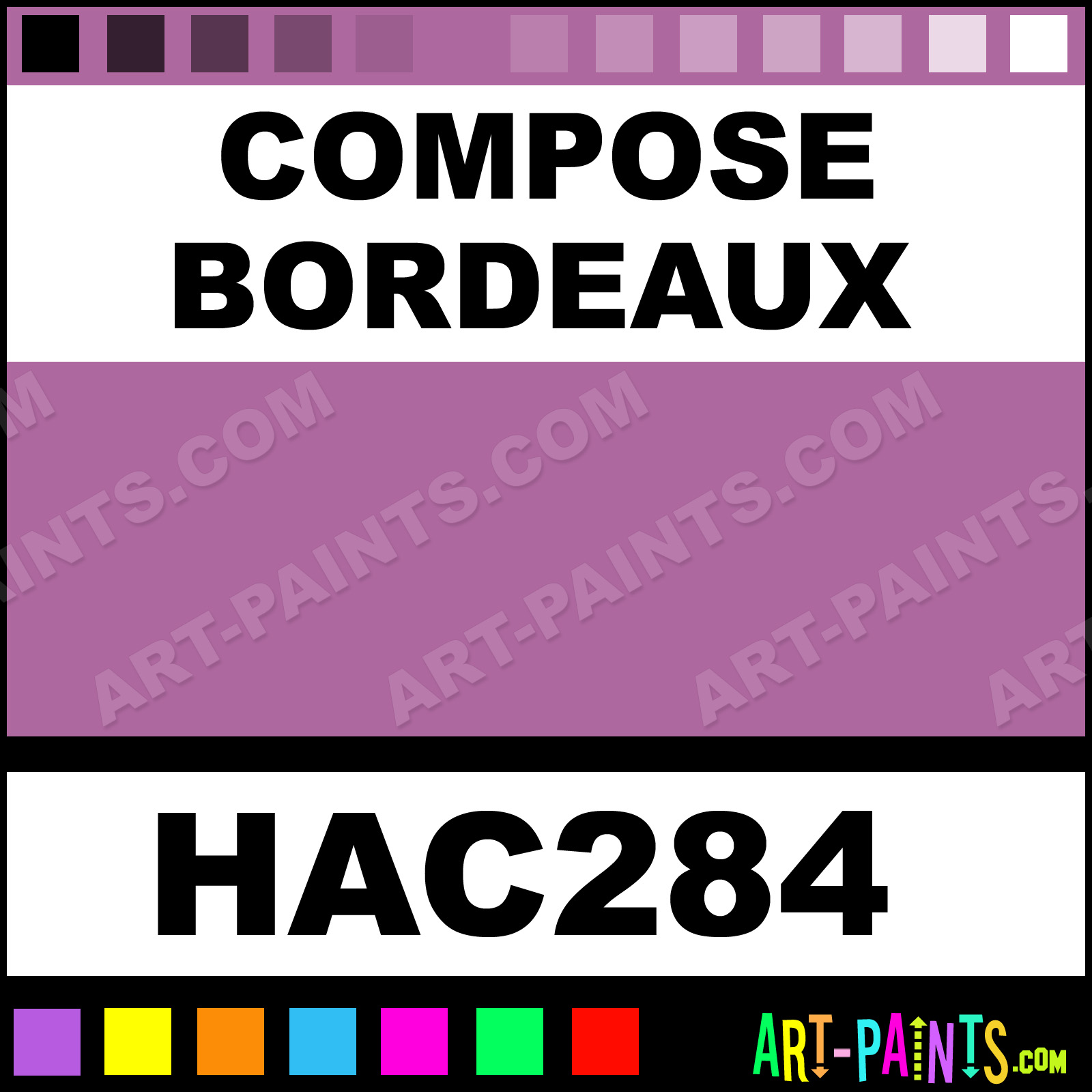 This beautiful Acryla Acrylic shade is called Compose Bordeaux, and comes from a company called Holbein. Their product number, along with the HTML color code, RGB, and CMYK codes are listed below. This Beautiful Shade of Compose Bordeaux and others can be found in the Holbein Acryla Art Paint Gallery! Also be sure to browse through the other wonderful Professional Color Galleries to see more of Holbein Acryla Acrylic Brand Paints and other Paint Manufacturers. And as always, Paint Paint Paint! -Art-Paints.com