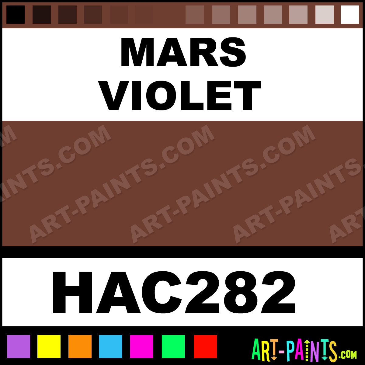 This beautiful Acryla Acrylic shade is called Mars Violet, and comes from a company called Holbein. Their product number, along with the HTML color code, RGB, and CMYK codes are listed below. This Beautiful Shade of Mars Violet and others can be found in the Holbein Acryla Art Paint Gallery! Also be sure to browse through the other wonderful Professional Color Galleries to see more of Holbein Acryla Acrylic Brand Paints and other Paint Manufacturers. And as always, Paint Paint Paint! -Art-Paints.com