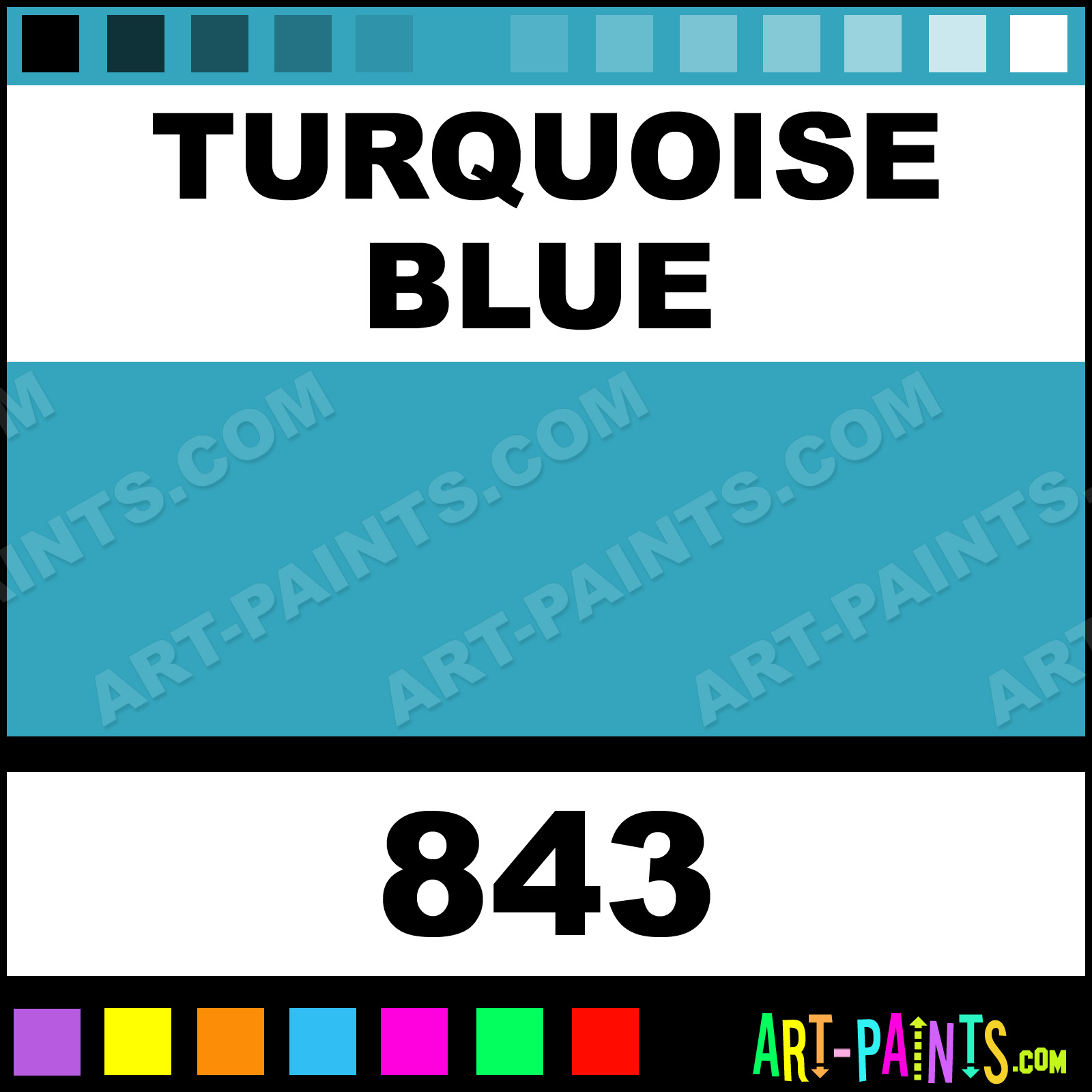 This beautiful Aquacryl Acrylic shade is called Turquoise Blue, and comes from a company called Lascaux. Their product number, along with the HTML color code, RGB, and CMYK codes are listed below. This Beautiful Shade of Turquoise Blue and others can be found in the Lascaux Aquacryl Art Paint Gallery! Also be sure to browse through the other wonderful Professional Color Galleries to see more of Lascaux Aquacryl Acrylic Brand Paints and other Paint Manufacturers. And as always, Paint Paint Paint! -Art-Paints.com