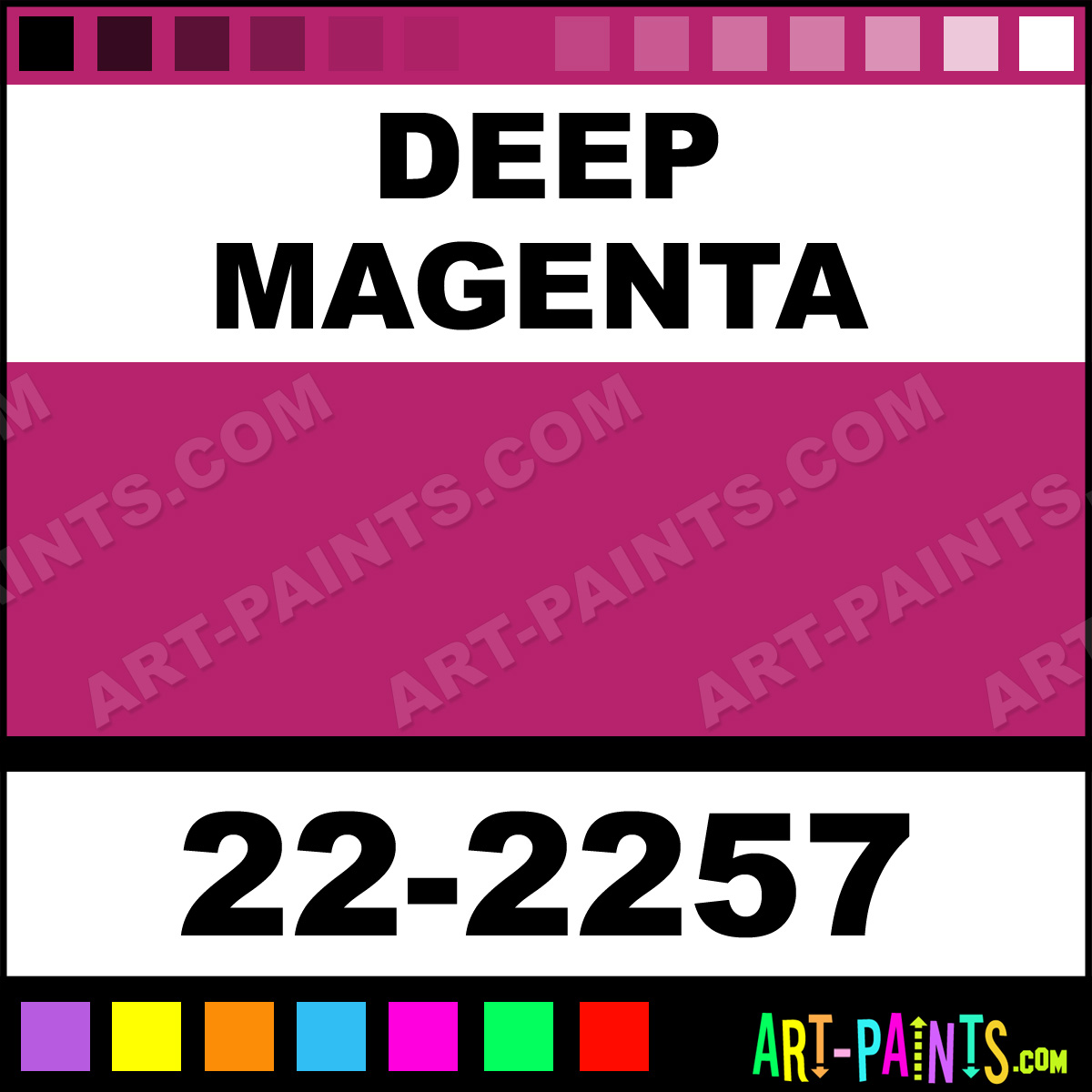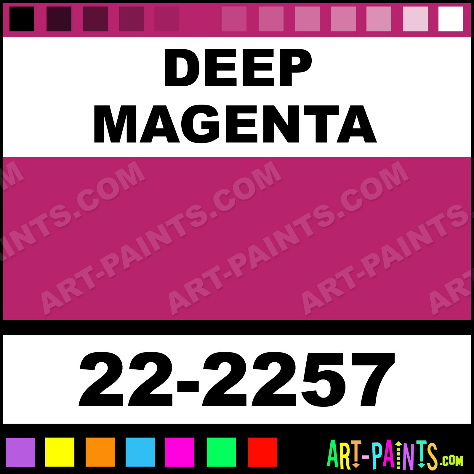 This beautiful Sargent Art Acrylic shade is called Deep Magenta, and comes from a company called Liquid Metal. Their product number, along with the HTML color code, RGB, and CMYK codes are listed below. This Beautiful Shade of Deep Magenta and others can be found in the Liquid Metal Sargent Art Art Paint Gallery! Also be sure to browse through the other wonderful Professional Color Galleries to see more of Liquid Metal Sargent Art Acrylic Brand Paints and other Paint Manufacturers. And as always, Paint Paint Paint! -Art-Paints.com