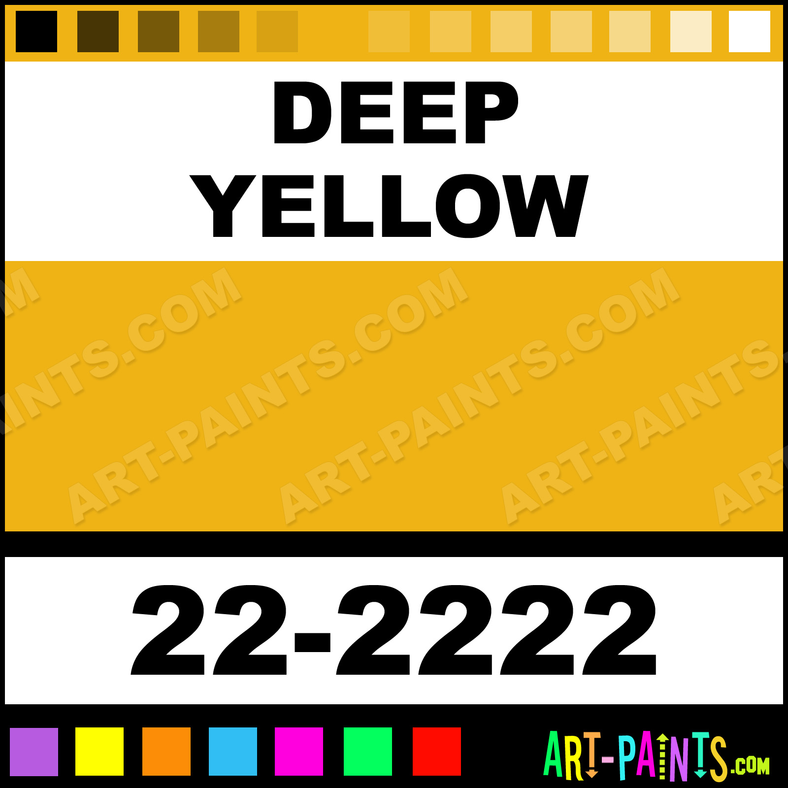 This beautiful Sargent Art Acrylic shade is called Deep Yellow, and comes from a company called Liquid Metal. Their product number, along with the HTML color code, RGB, and CMYK codes are listed below. This Beautiful Shade of Deep Yellow and others can be found in the Liquid Metal Sargent Art Art Paint Gallery! Also be sure to browse through the other wonderful Professional Color Galleries to see more of Liquid Metal Sargent Art Acrylic Brand Paints and other Paint Manufacturers. And as always, Paint Paint Paint! -Art-Paints.com