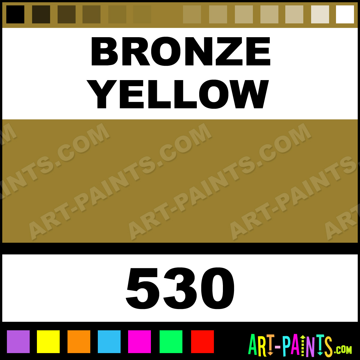This beautiful Soft Body Acrylic shade is called Bronze Yellow, and comes from a company called Liquitex. Their product number, along with the HTML color code, RGB, and CMYK codes are listed below. This Beautiful Shade of Bronze Yellow and others can be found in the Liquitex Soft Body Art Paint Gallery! Also be sure to browse through the other wonderful Professional Color Galleries to see more of Liquitex Soft Body Acrylic Brand Paints and other Paint Manufacturers. And as always, Paint Paint Paint! -Art-Paints.com