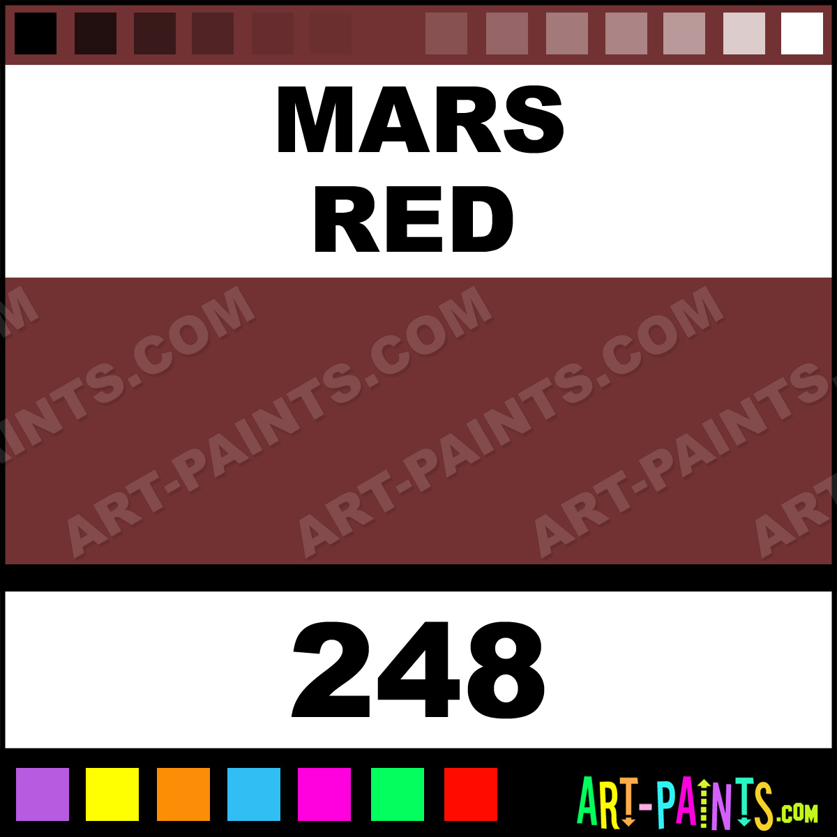 This beautiful Brera Acrylic shade is called Mars Red, and comes from a company called Maimeri. Their product number, along with the HTML color code, RGB, and CMYK codes are listed below. This Beautiful Shade of Mars Red and others can be found in the Maimeri Brera Art Paint Gallery! Also be sure to browse through the other wonderful Professional Color Galleries to see more of Maimeri Brera Acrylic Brand Paints and other Paint Manufacturers. And as always, Paint Paint Paint! -Art-Paints.com