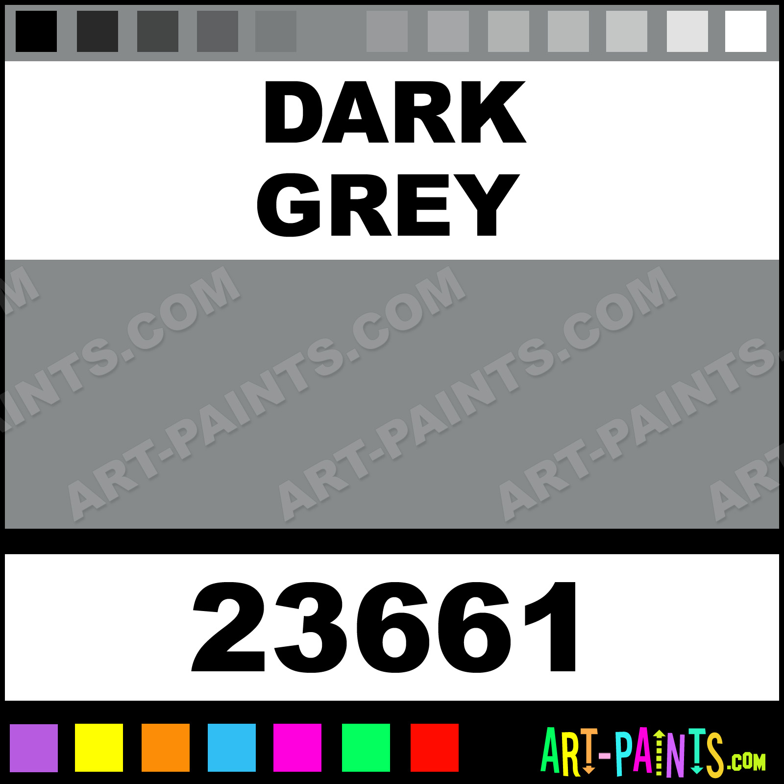 This beautiful Craft Smart Acrylic shade is called Dark Grey, and comes from a company called Michaels. Their product number, along with the HTML color code, RGB, and CMYK codes are listed below. This Beautiful Shade of Dark Grey and others can be found in the Michaels Craft Smart Art Paint Gallery! Also be sure to browse through the other wonderful Professional Color Galleries to see more of Michaels Craft Smart Acrylic Brand Paints and other Paint Manufacturers. And as always, Paint Paint Paint! -Art-Paints.com