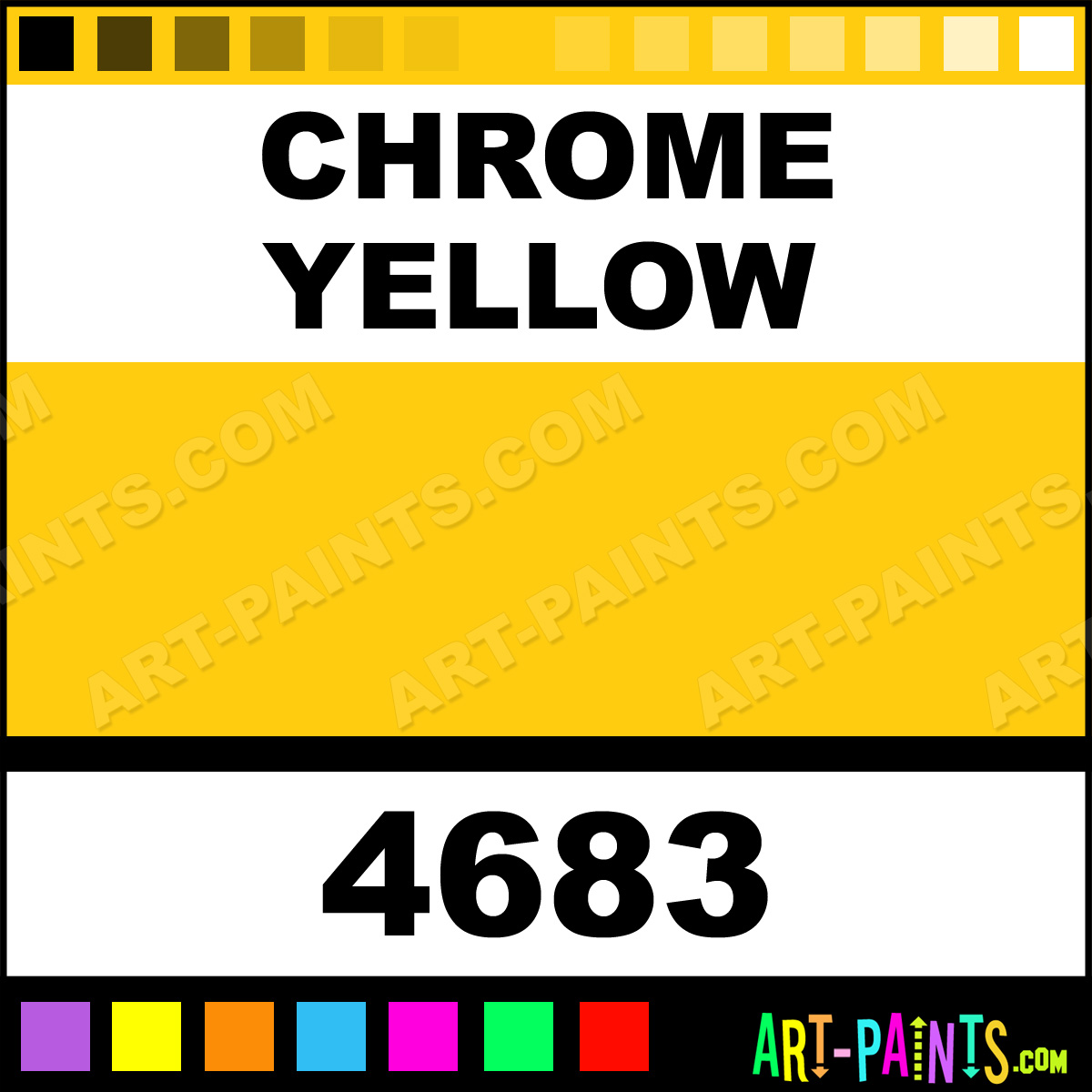 This beautiful Artist Acrylic shade is called Chrome Yellow, and comes from a company called Model Master. Their product number, along with the HTML color code, RGB, and CMYK codes are listed below. This Beautiful Shade of Chrome Yellow and others can be found in the Model Master Artist Art Paint Gallery! Also be sure to browse through the other wonderful Professional Color Galleries to see more of Model Master Artist Acrylic Brand Paints and other Paint Manufacturers. And as always, Paint Paint Paint! -Art-Paints.com