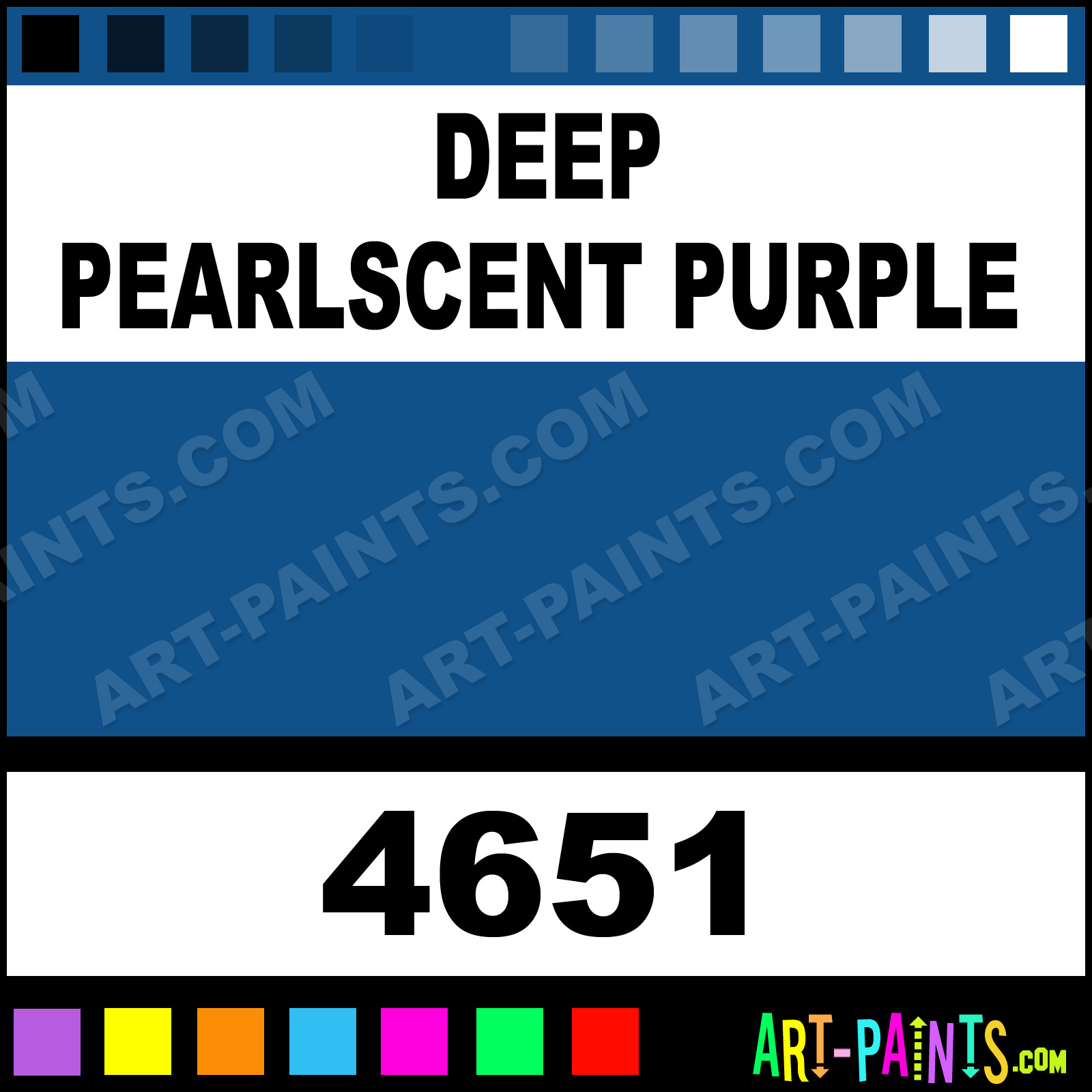 This beautiful Artist Acrylic shade is called Deep Pearlscent Purple, and comes from a company called Model Master. Their product number, along with the HTML color code, RGB, and CMYK codes are listed below. This Beautiful Shade of Deep Pearlscent Purple and others can be found in the Model Master Artist Art Paint Gallery! Also be sure to browse through the other wonderful Professional Color Galleries to see more of Model Master Artist Acrylic Brand Paints and other Paint Manufacturers. And as always, Paint Paint Paint! -Art-Paints.com