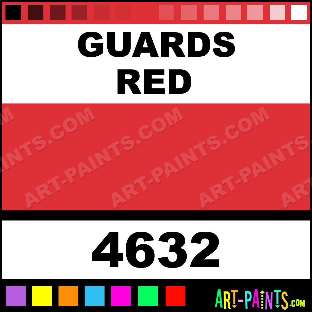 This beautiful Artist Acrylic shade is called Guards Red, and comes from a company called Model Master. Their product number, along with the HTML color code, RGB, and CMYK codes are listed below. This Beautiful Shade of Guards Red and others can be found in the Model Master Artist Art Paint Gallery! Also be sure to browse through the other wonderful Professional Color Galleries to see more of Model Master Artist Acrylic Brand Paints and other Paint Manufacturers. And as always, Paint Paint Paint! -Art-Paints.com