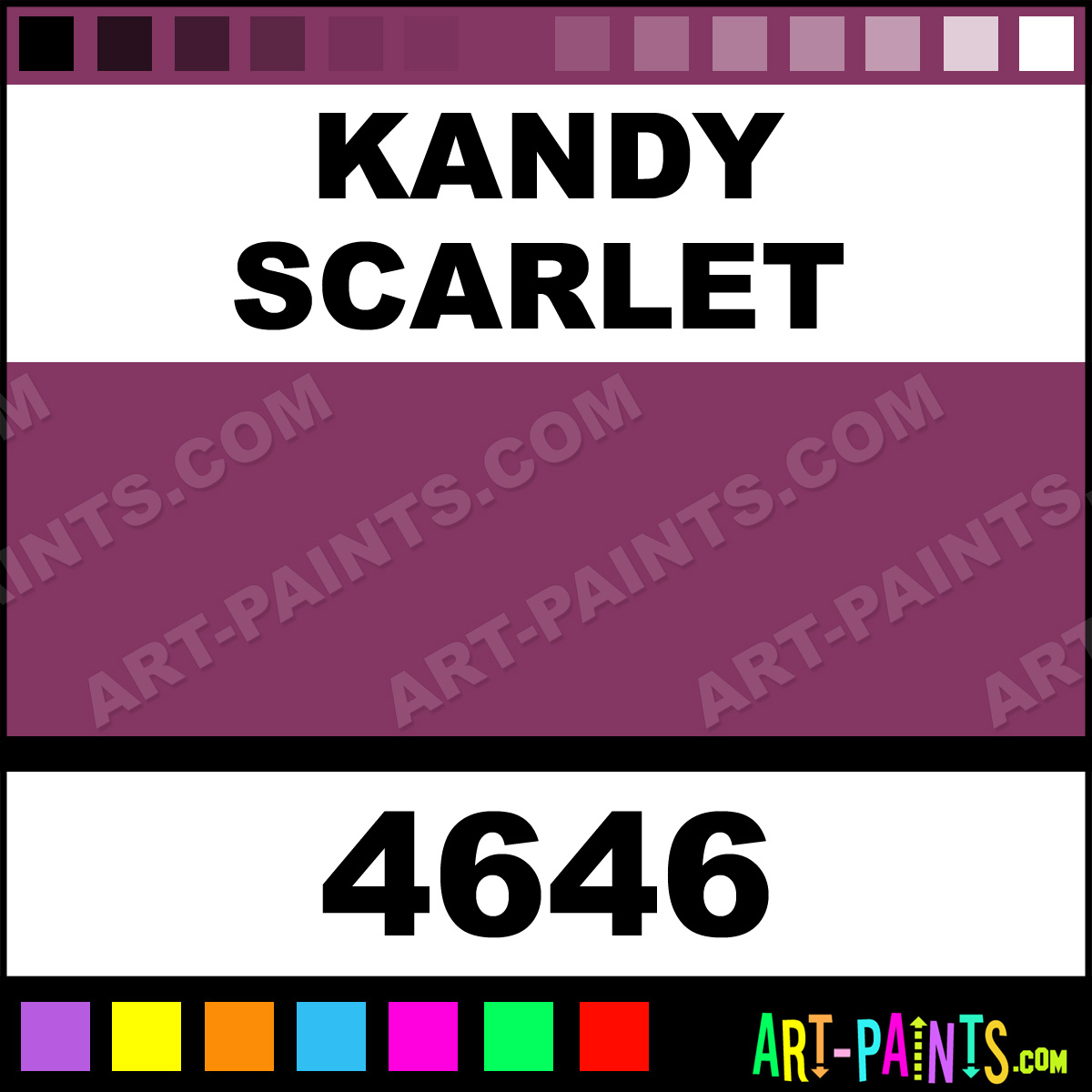 This beautiful Artist Acrylic shade is called Kandy Scarlet, and comes from a company called Model Master. Their product number, along with the HTML color code, RGB, and CMYK codes are listed below. This Beautiful Shade of Kandy Scarlet and others can be found in the Model Master Artist Art Paint Gallery! Also be sure to browse through the other wonderful Professional Color Galleries to see more of Model Master Artist Acrylic Brand Paints and other Paint Manufacturers. And as always, Paint Paint Paint! -Art-Paints.com