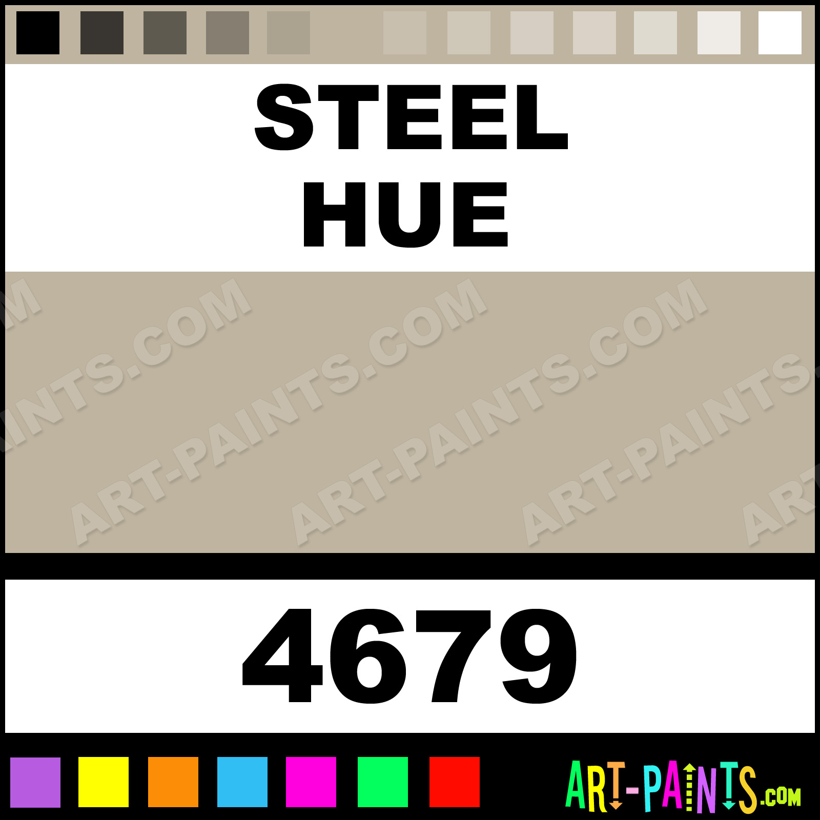 This beautiful Artist Acrylic shade is called Steel, and comes from a company called Model Master. Their product number, along with the HTML color code, RGB, and CMYK codes are listed below. This Beautiful Shade of Steel and others can be found in the Model Master Artist Art Paint Gallery! Also be sure to browse through the other wonderful Professional Color Galleries to see more of Model Master Artist Acrylic Brand Paints and other Paint Manufacturers. And as always, Paint Paint Paint! -Art-Paints.com
