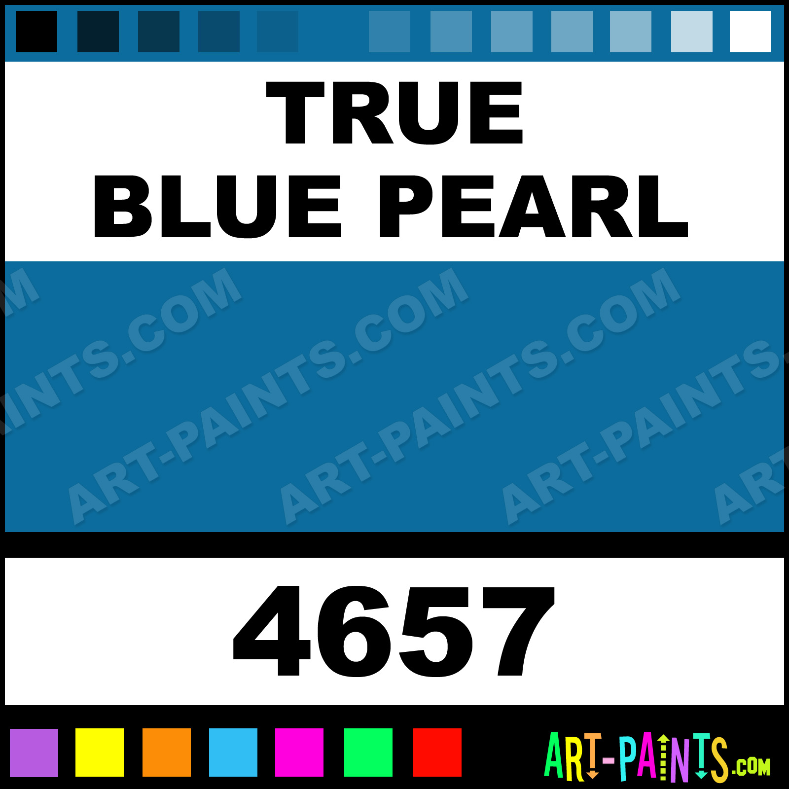 This beautiful Artist Acrylic shade is called True Blue Pearl, and comes from a company called Model Master. Their product number, along with the HTML color code, RGB, and CMYK codes are listed below. This Beautiful Shade of True Blue Pearl and others can be found in the Model Master Artist Art Paint Gallery! Also be sure to browse through the other wonderful Professional Color Galleries to see more of Model Master Artist Acrylic Brand Paints and other Paint Manufacturers. And as always, Paint Paint Paint! -Art-Paints.com
