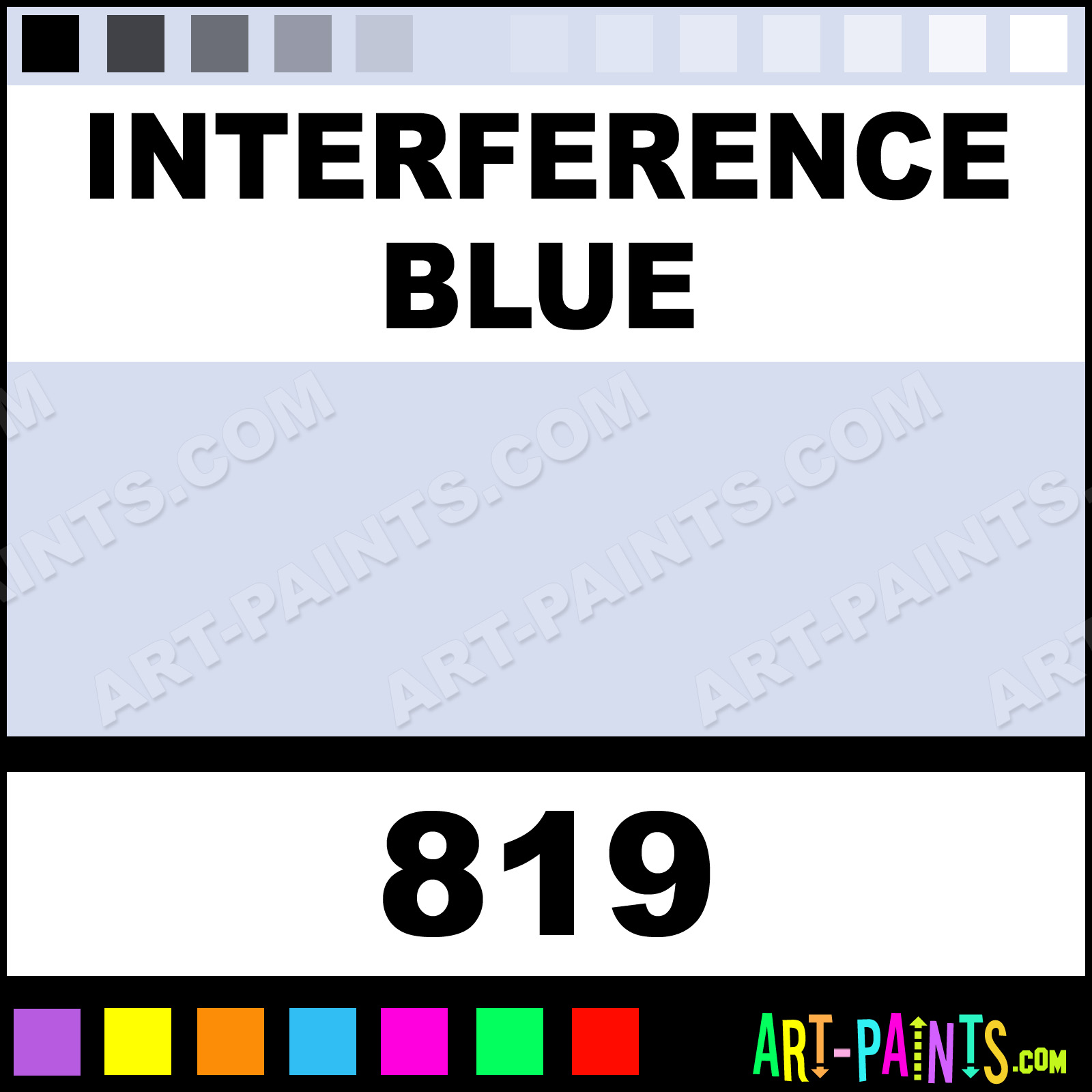 This beautiful Classic Acrylic shade is called Interference Blue, and comes from a company called Old Holland. Their product number, along with the HTML color code, RGB, and CMYK codes are listed below. This Beautiful Shade of Interference Blue and others can be found in the Old Holland Classic Art Paint Gallery! Also be sure to browse through the other wonderful Professional Color Galleries to see more of Old Holland Classic Acrylic Brand Paints and other Paint Manufacturers. And as always, Paint Paint Paint! -Art-Paints.com
