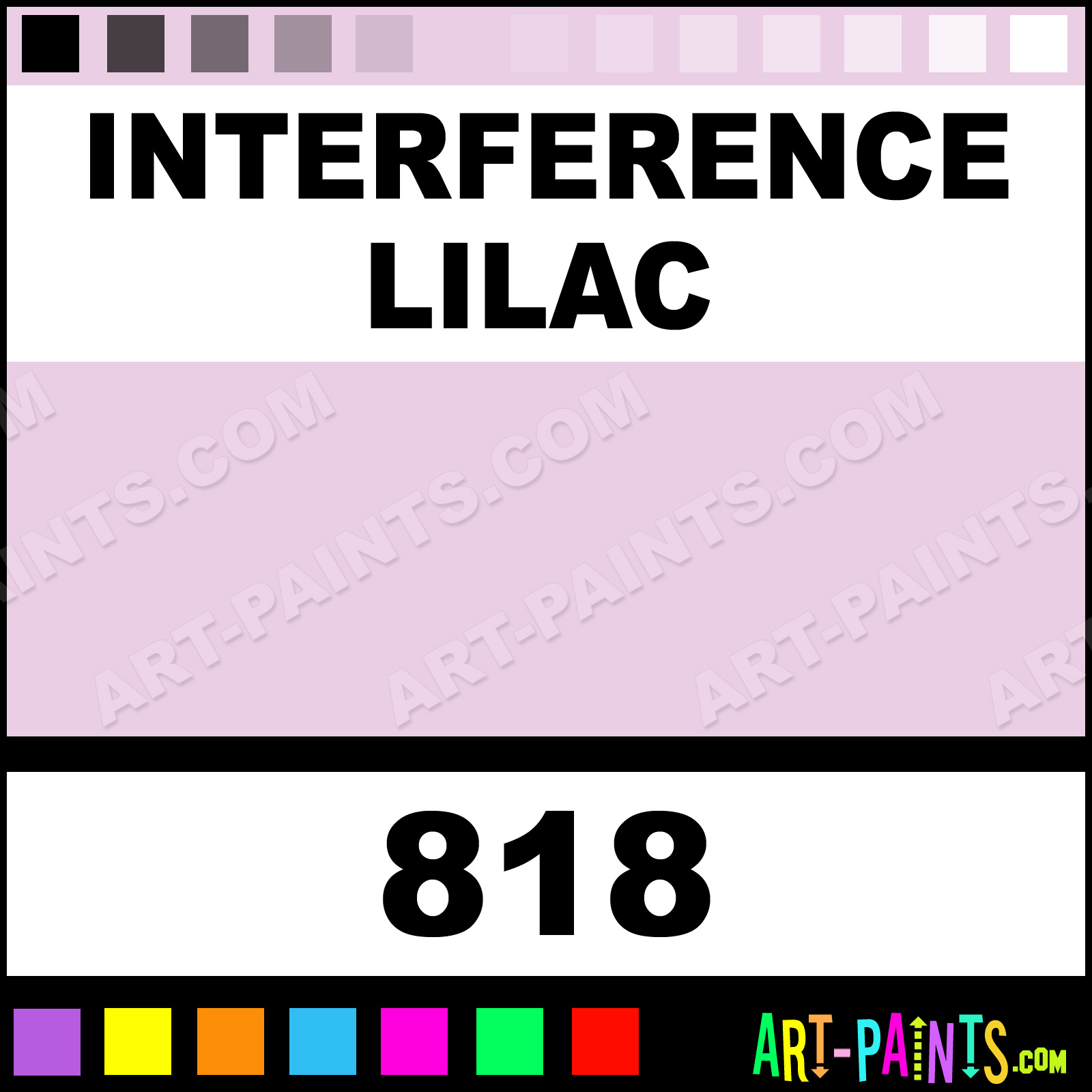 This beautiful Classic Acrylic shade is called Interference Lilac, and comes from a company called Old Holland. Their product number, along with the HTML color code, RGB, and CMYK codes are listed below. This Beautiful Shade of Interference Lilac and others can be found in the Old Holland Classic Art Paint Gallery! Also be sure to browse through the other wonderful Professional Color Galleries to see more of Old Holland Classic Acrylic Brand Paints and other Paint Manufacturers. And as always, Paint Paint Paint! -Art-Paints.com