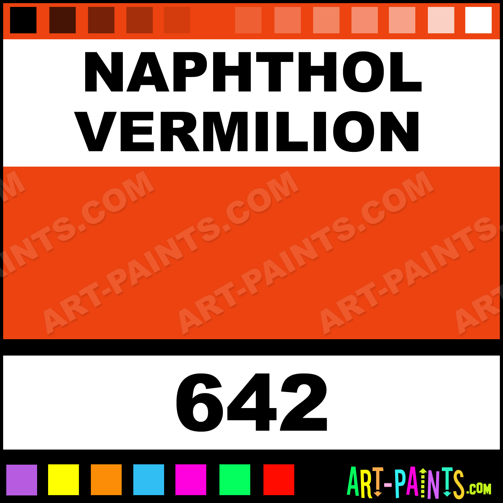 This beautiful Classic Acrylic shade is called Naphthol Vermilion, and comes from a company called Old Holland. Their product number, along with the HTML color code, RGB, and CMYK codes are listed below. This Beautiful Shade of Naphthol Vermilion and others can be found in the Old Holland Classic Art Paint Gallery! Also be sure to browse through the other wonderful Professional Color Galleries to see more of Old Holland Classic Acrylic Brand Paints and other Paint Manufacturers. And as always, Paint Paint Paint! -Art-Paints.com