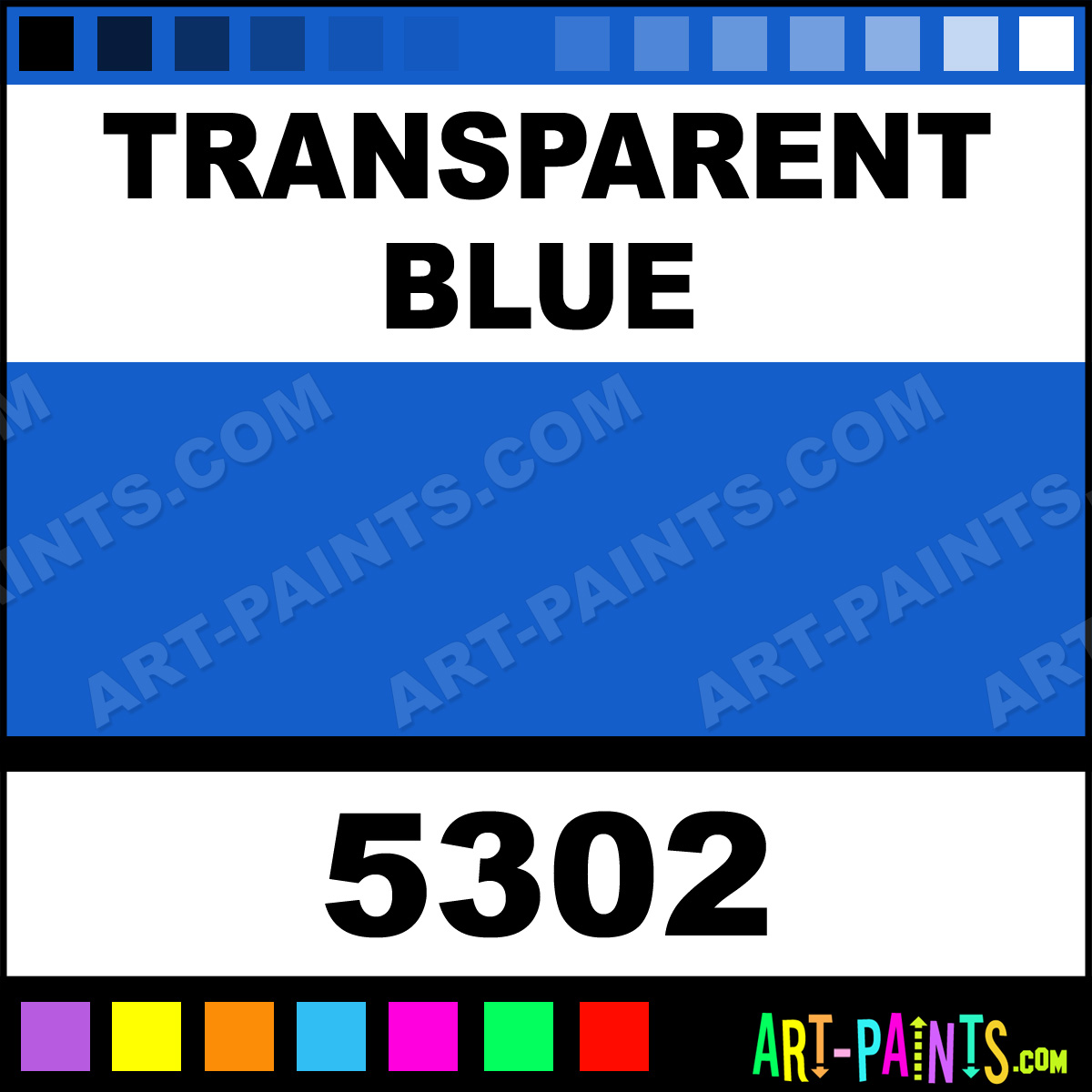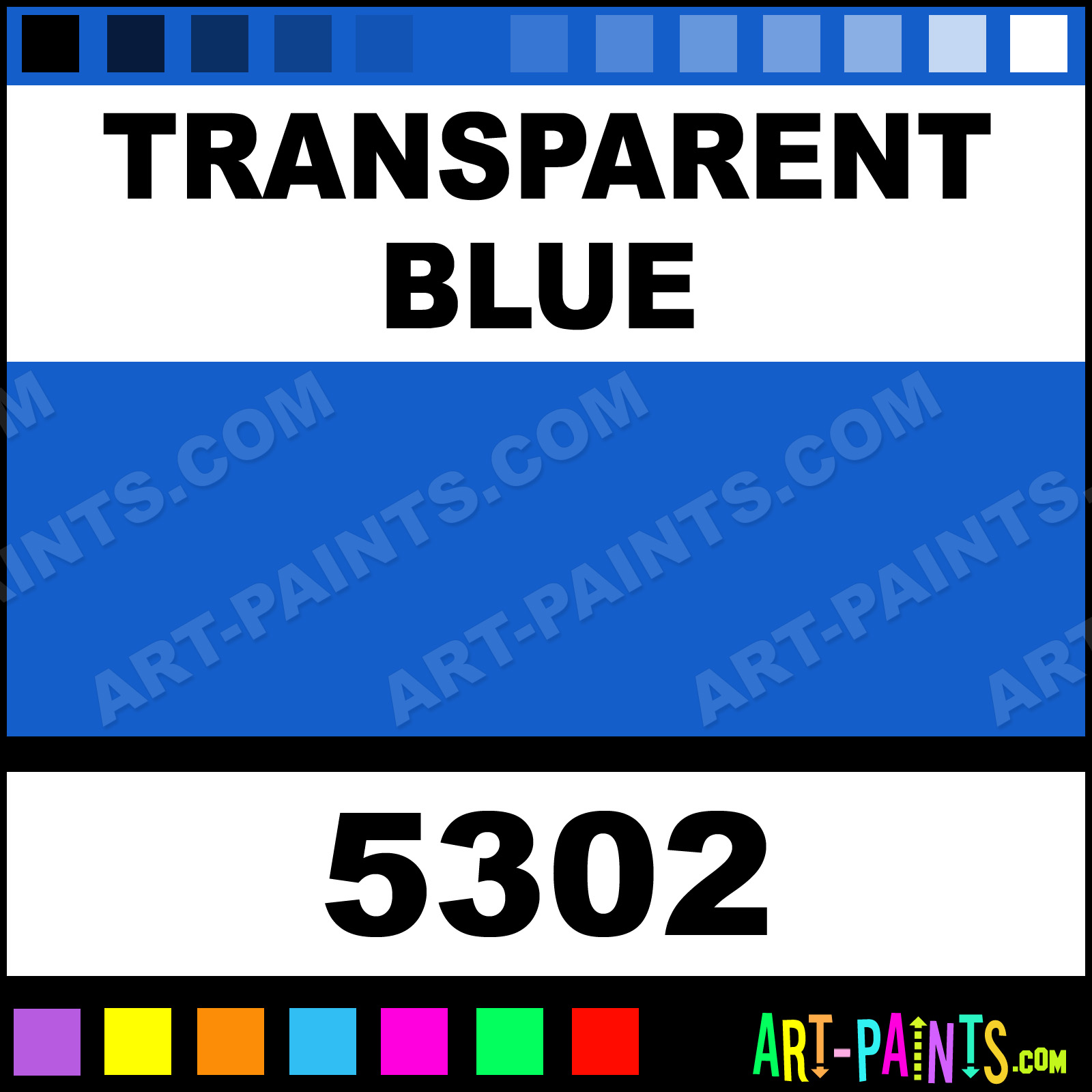This beautiful Racing Finish Acrylic shade is called Transparent Blue, and comes from a company called Pactra. Their product number, along with the HTML color code, RGB, and CMYK codes are listed below. This Beautiful Shade of Transparent Blue and others can be found in the Pactra Racing Finish Art Paint Gallery! Also be sure to browse through the other wonderful Professional Color Galleries to see more of Pactra Racing Finish Acrylic Brand Paints and other Paint Manufacturers. And as always, Paint Paint Paint! -Art-Paints.com