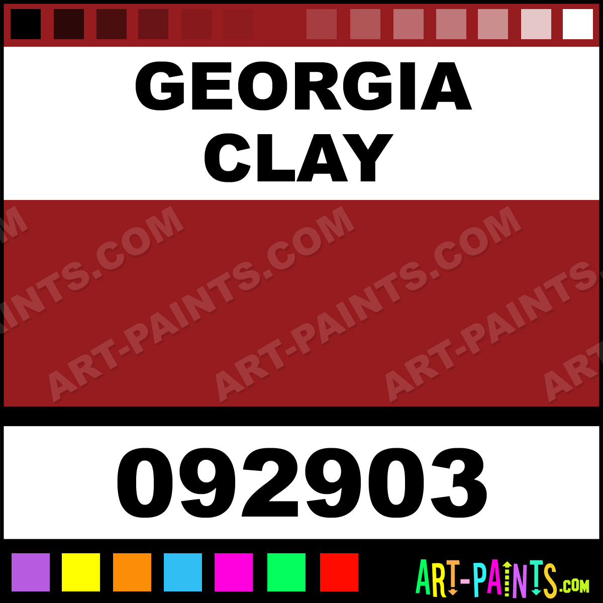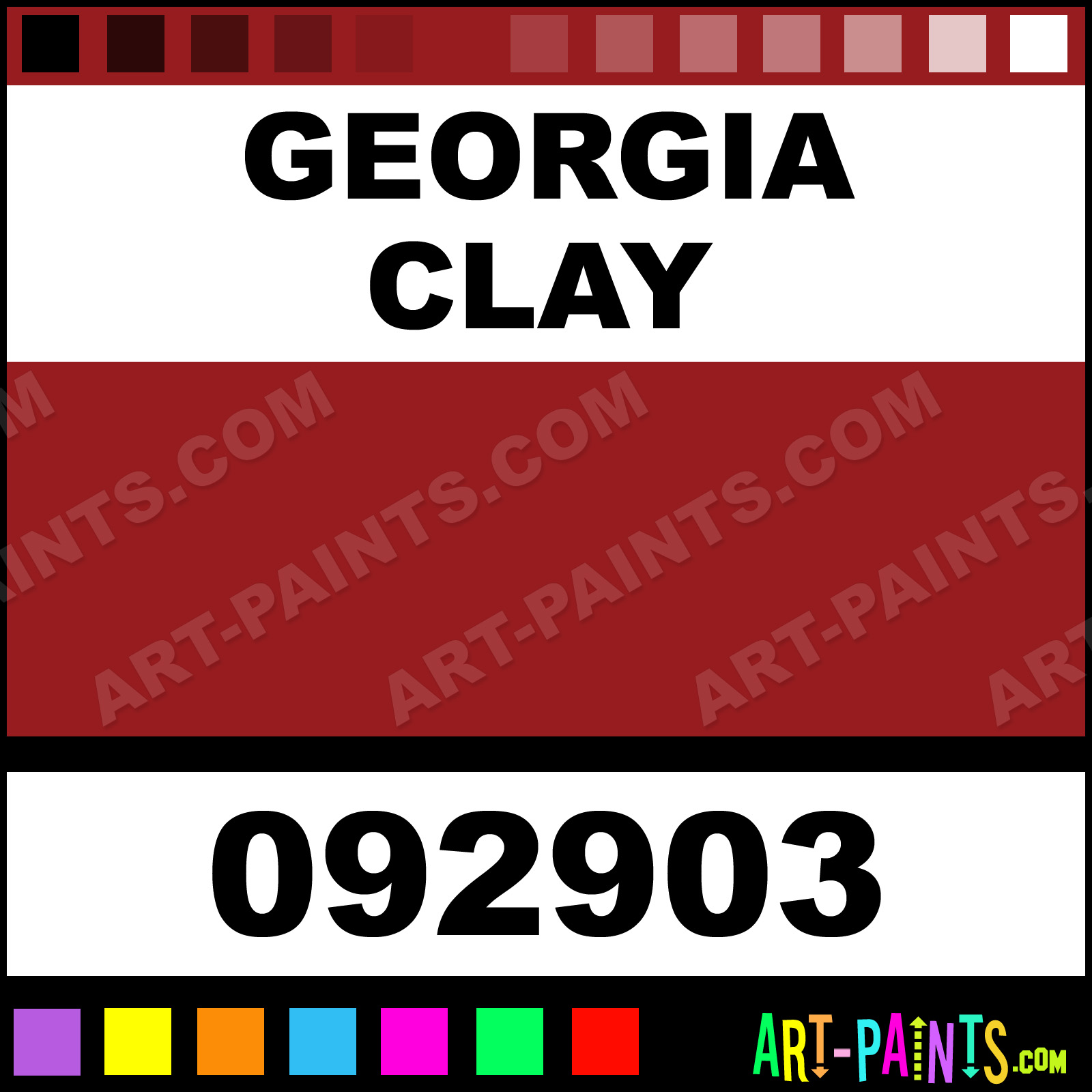 This beautiful Natures Hue Acrylic shade is called Georgia Clay, and comes from a company called Palmer. Their product number, along with the HTML color code, RGB, and CMYK codes are listed below. This Beautiful Shade of Georgia Clay and others can be found in the Palmer Natures Hue Art Paint Gallery! Also be sure to browse through the other wonderful Professional Color Galleries to see more of Palmer Natures Hue Acrylic Brand Paints and other Paint Manufacturers. And as always, Paint Paint Paint! -Art-Paints.com