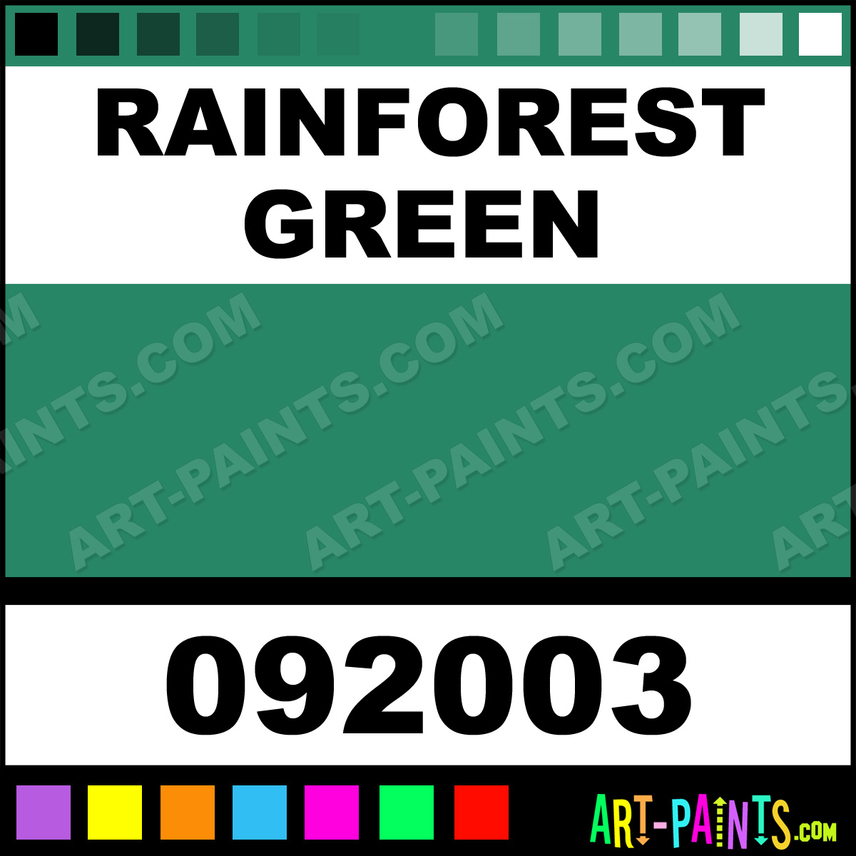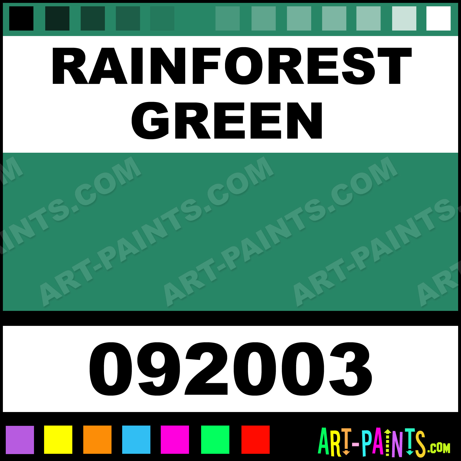 This beautiful Natures Hue Acrylic shade is called Rainforest Green, and comes from a company called Palmer. Their product number, along with the HTML color code, RGB, and CMYK codes are listed below. This Beautiful Shade of Rainforest Green and others can be found in the Palmer Natures Hue Art Paint Gallery! Also be sure to browse through the other wonderful Professional Color Galleries to see more of Palmer Natures Hue Acrylic Brand Paints and other Paint Manufacturers. And as always, Paint Paint Paint! -Art-Paints.com