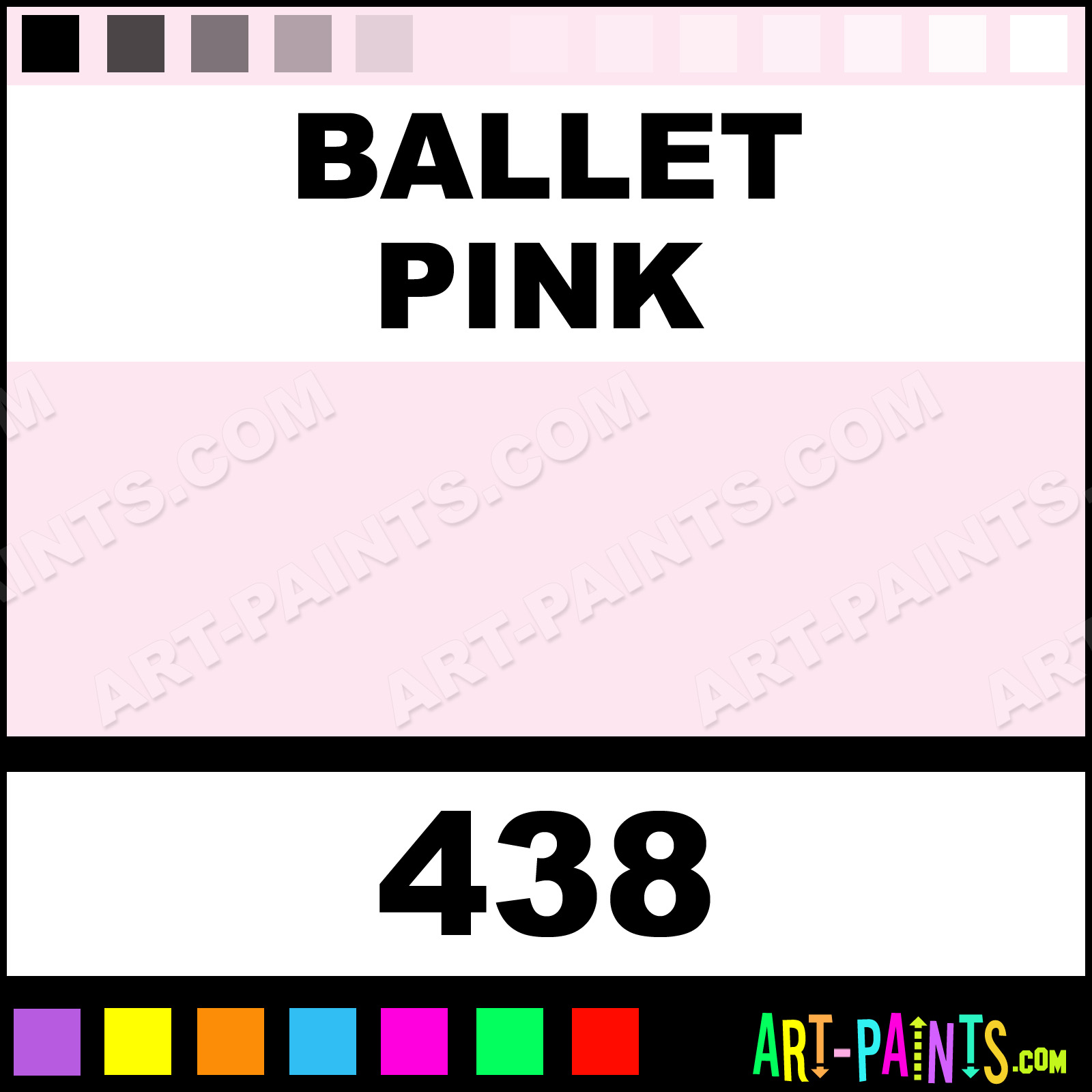 This beautiful Folk Art Acrylic shade is called Ballet Pink, and comes from a company called Plaid. Their product number, along with the HTML color code, RGB, and CMYK codes are listed below. This Beautiful Shade of Ballet Pink and others can be found in the Plaid Folk Art Art Paint Gallery! Also be sure to browse through the other wonderful Professional Color Galleries to see more of Plaid Folk Art Acrylic Brand Paints and other Paint Manufacturers. And as always, Paint Paint Paint! -Art-Paints.com