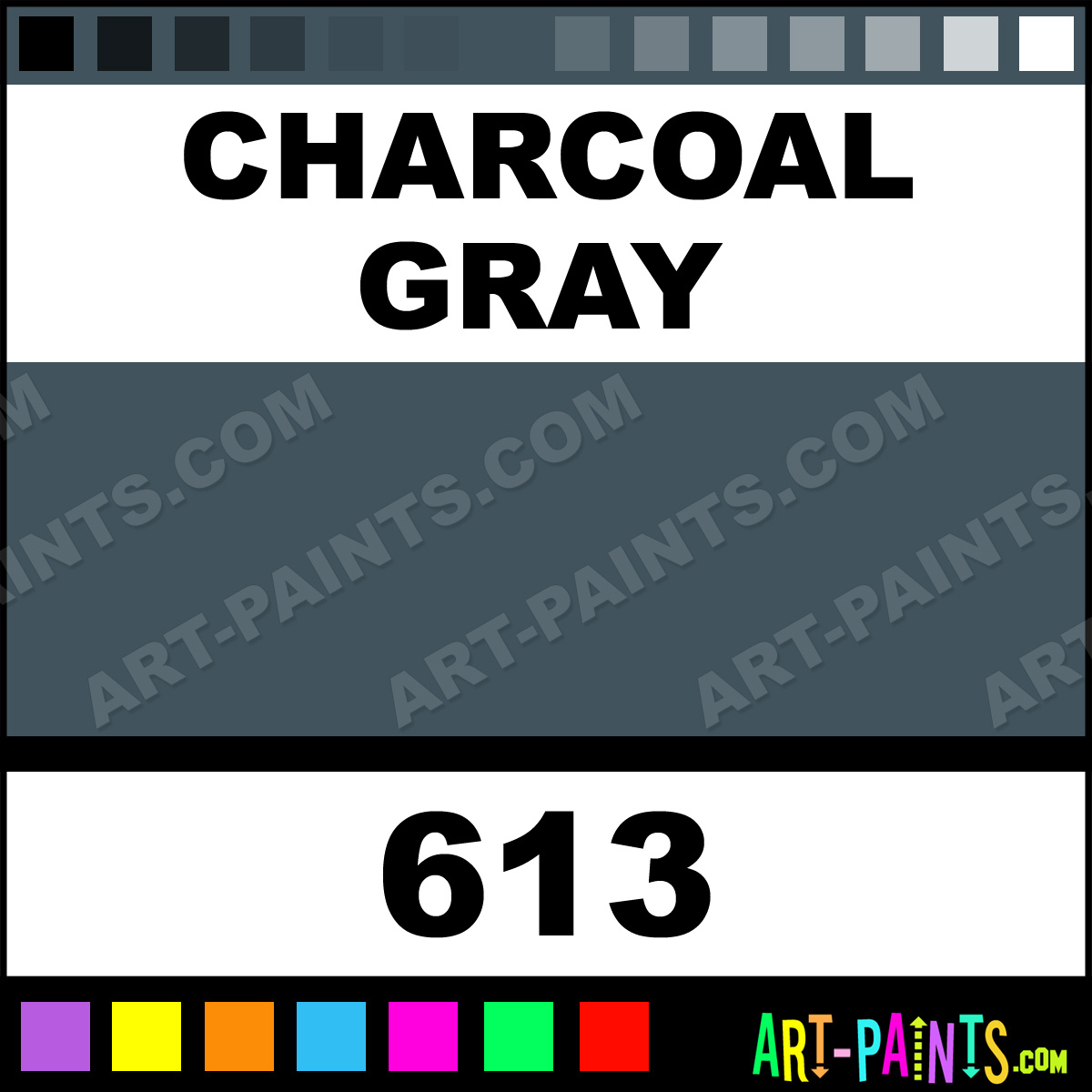 This beautiful Folk Art Acrylic shade is called Charcoal Gray, and comes from a company called Plaid. Their product number, along with the HTML color code, RGB, and CMYK codes are listed below. This Beautiful Shade of Charcoal Gray and others can be found in the Plaid Folk Art Art Paint Gallery! Also be sure to browse through the other wonderful Professional Color Galleries to see more of Plaid Folk Art Acrylic Brand Paints and other Paint Manufacturers. And as always, Paint Paint Paint! -Art-Paints.com