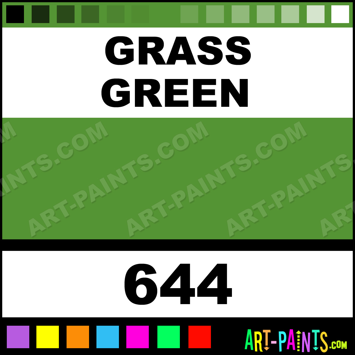 This beautiful Folk Art Acrylic shade is called Grass Green, and comes from a company called Plaid. Their product number, along with the HTML color code, RGB, and CMYK codes are listed below. This Beautiful Shade of Grass Green and others can be found in the Plaid Folk Art Art Paint Gallery! Also be sure to browse through the other wonderful Professional Color Galleries to see more of Plaid Folk Art Acrylic Brand Paints and other Paint Manufacturers. And as always, Paint Paint Paint! -Art-Paints.com
