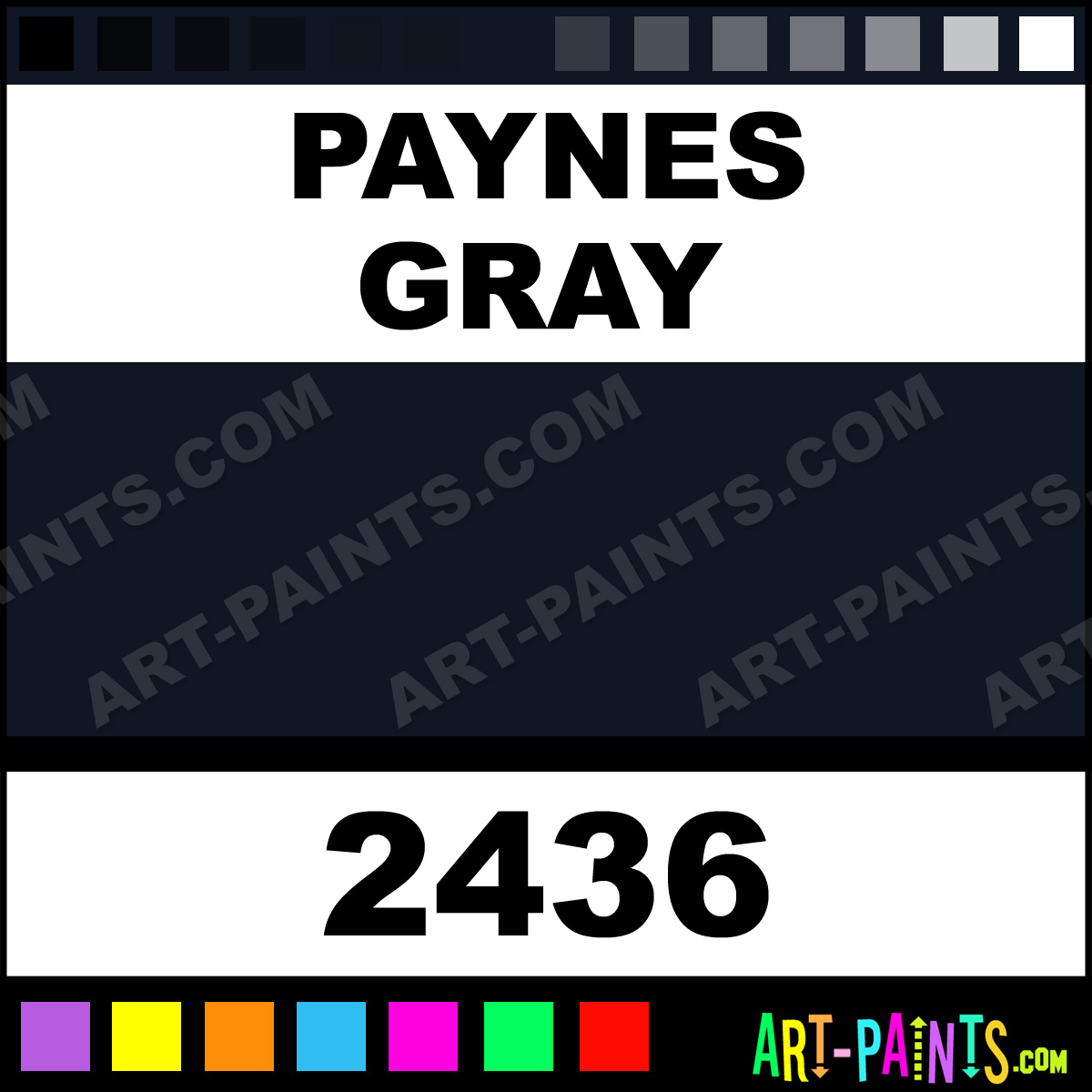 This beautiful Student Acrylic shade is called Paynes Gray, and comes from a company called Prima. Their product number, along with the HTML color code, RGB, and CMYK codes are listed below. This Beautiful Shade of Paynes Gray and others can be found in the Prima Student Art Paint Gallery! Also be sure to browse through the other wonderful Professional Color Galleries to see more of Prima Student Acrylic Brand Paints and other Paint Manufacturers. And as always, Paint Paint Paint! -Art-Paints.com