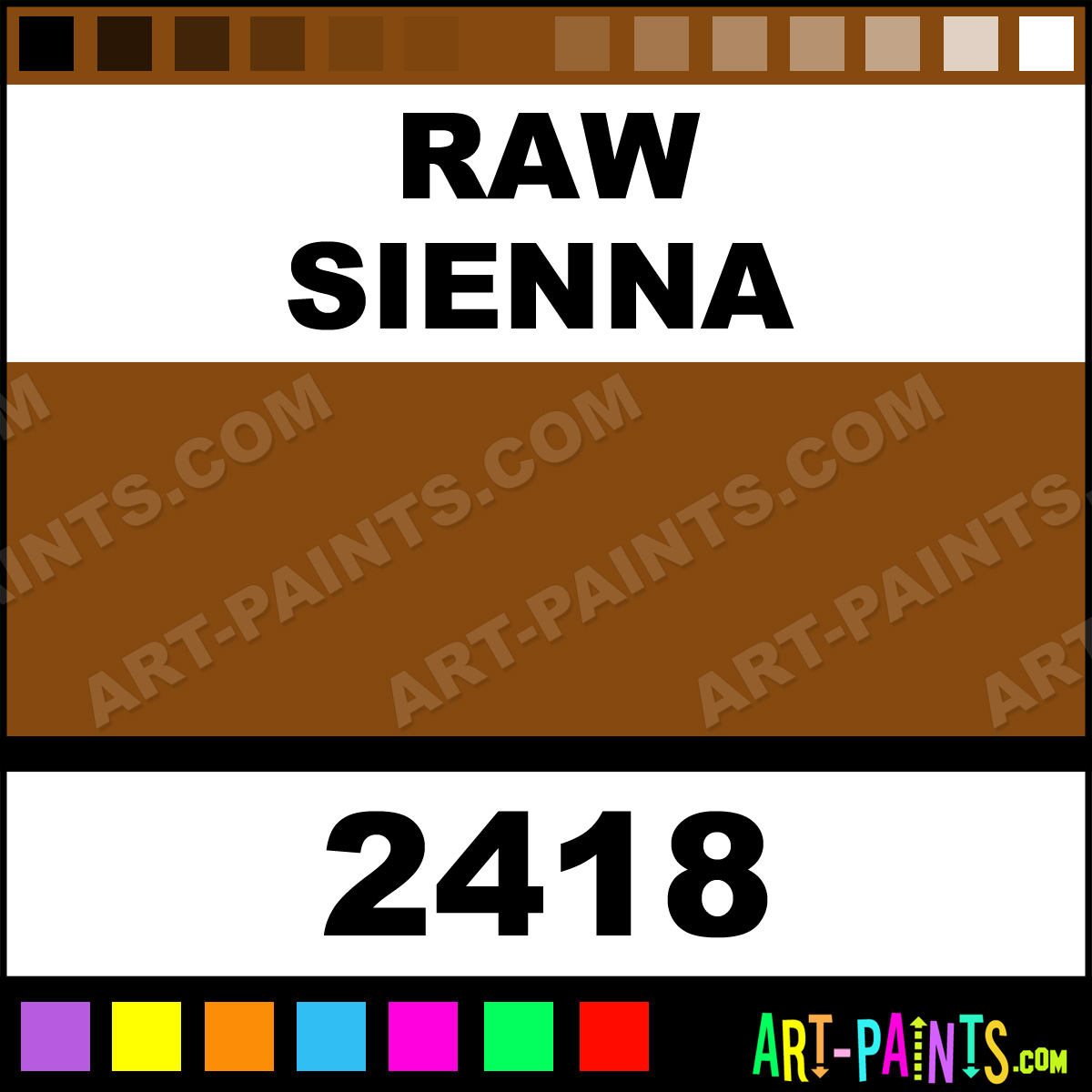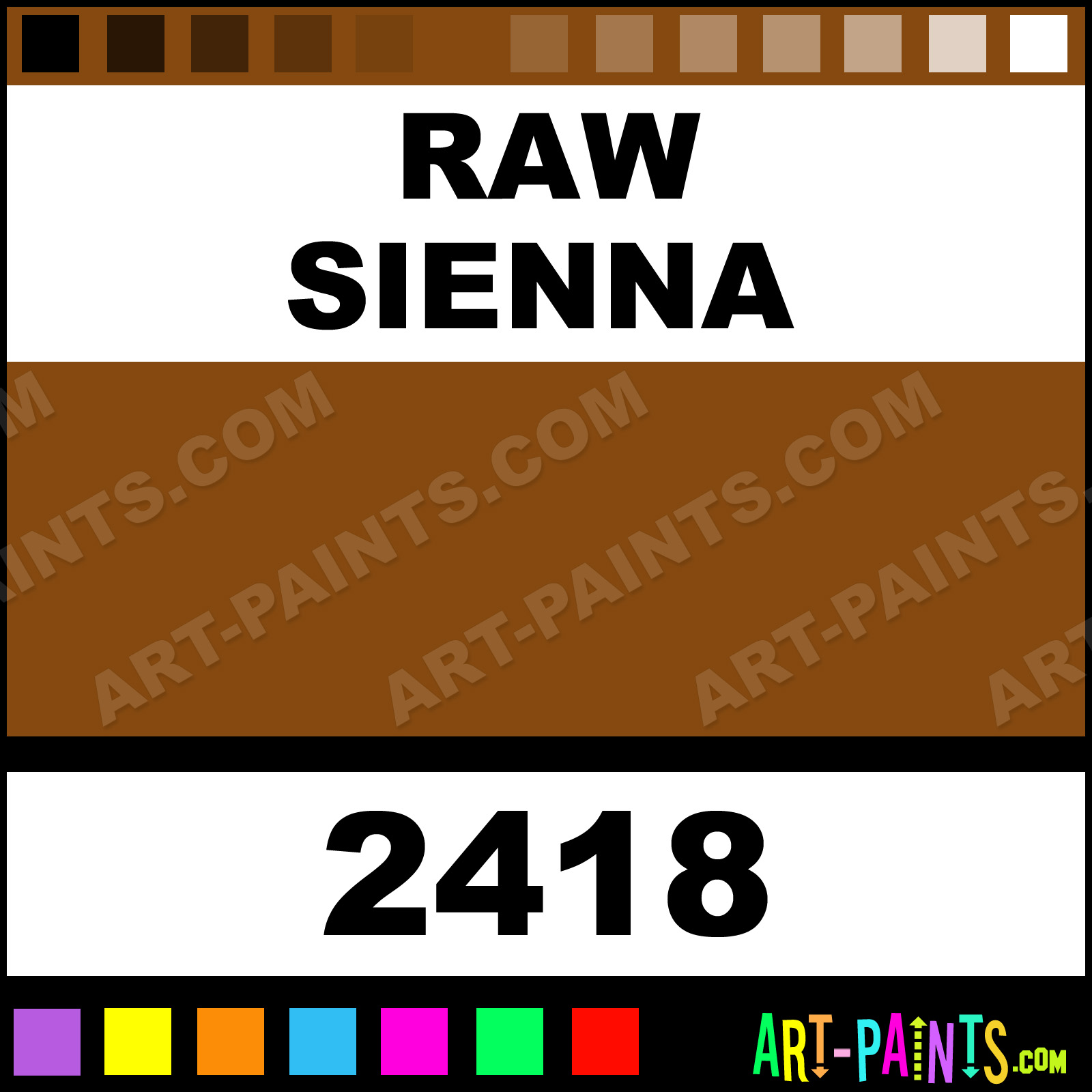 This beautiful Student Acrylic shade is called Raw Sienna, and comes from a company called Prima. Their product number, along with the HTML color code, RGB, and CMYK codes are listed below. This Beautiful Shade of Raw Sienna and others can be found in the Prima Student Art Paint Gallery! Also be sure to browse through the other wonderful Professional Color Galleries to see more of Prima Student Acrylic Brand Paints and other Paint Manufacturers. And as always, Paint Paint Paint! -Art-Paints.com