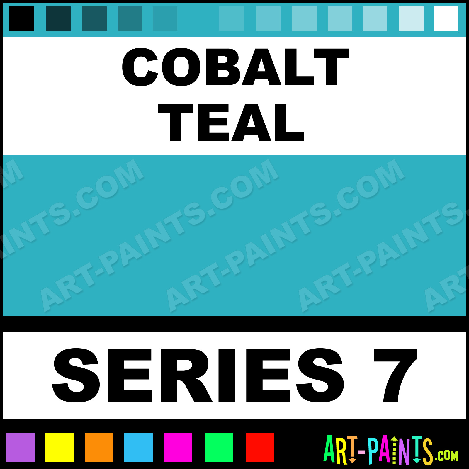 This beautiful Artist Acrylic shade is called Cobalt Teal, and comes from a company called Stephen Quiller. Their product number, along with the HTML color code, RGB, and CMYK codes are listed below. This Beautiful Shade of Cobalt Teal and others can be found in the Stephen Quiller Artist Art Paint Gallery! Also be sure to browse through the other wonderful Professional Color Galleries to see more of Stephen Quiller Artist Acrylic Brand Paints and other Paint Manufacturers. And as always, Paint Paint Paint! -Art-Paints.com
