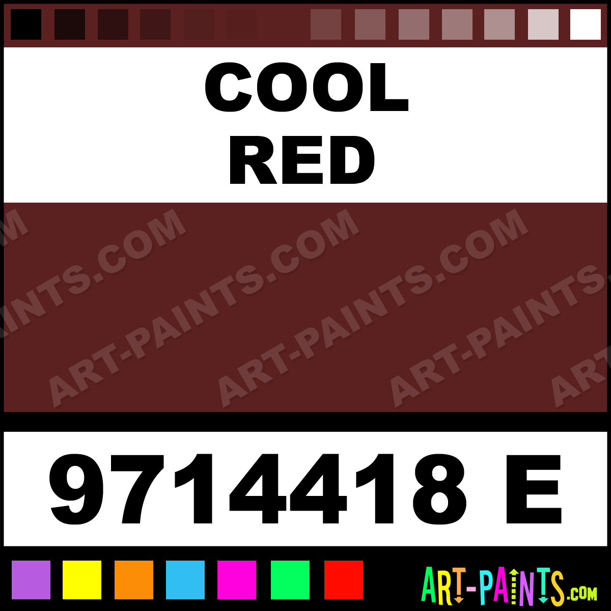 This beautiful School Acrylic shade is called Cool Red, and comes from a company called Student. Their product number, along with the HTML color code, RGB, and CMYK codes are listed below. This Beautiful Shade of Cool Red and others can be found in the Student School Art Paint Gallery! Also be sure to browse through the other wonderful Professional Color Galleries to see more of Student School Acrylic Brand Paints and other Paint Manufacturers. And as always, Paint Paint Paint! -Art-Paints.com