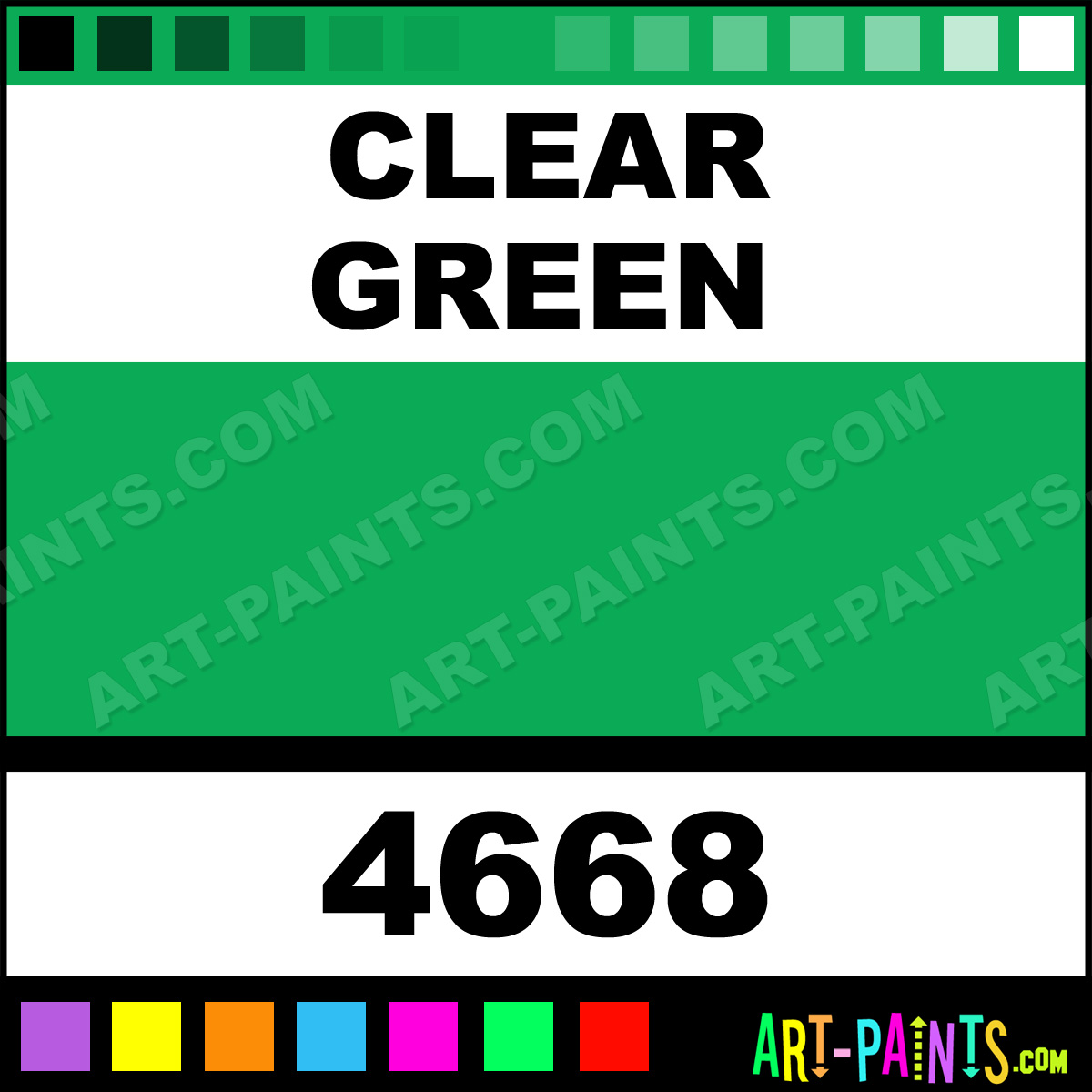 This beautiful Model Master Acrylic shade is called Clear Green, and comes from a company called Testors. Their product number, along with the HTML color code, RGB, and CMYK codes are listed below. This Beautiful Shade of Clear Green and others can be found in the Testors Model Master Art Paint Gallery! Also be sure to browse through the other wonderful Professional Color Galleries to see more of Testors Model Master Acrylic Brand Paints and other Paint Manufacturers. And as always, Paint Paint Paint! -Art-Paints.com