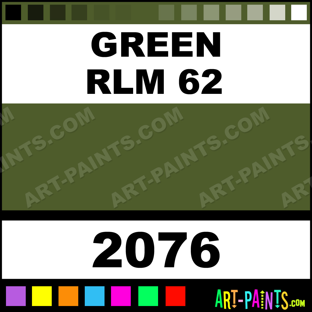 This beautiful Model Master Acrylic shade is called Green RLM 62, and comes from a company called Testors. Their product number, along with the HTML color code, RGB, and CMYK codes are listed below. This Beautiful Shade of Green RLM 62 and others can be found in the Testors Model Master Art Paint Gallery! Also be sure to browse through the other wonderful Professional Color Galleries to see more of Testors Model Master Acrylic Brand Paints and other Paint Manufacturers. And as always, Paint Paint Paint! -Art-Paints.com