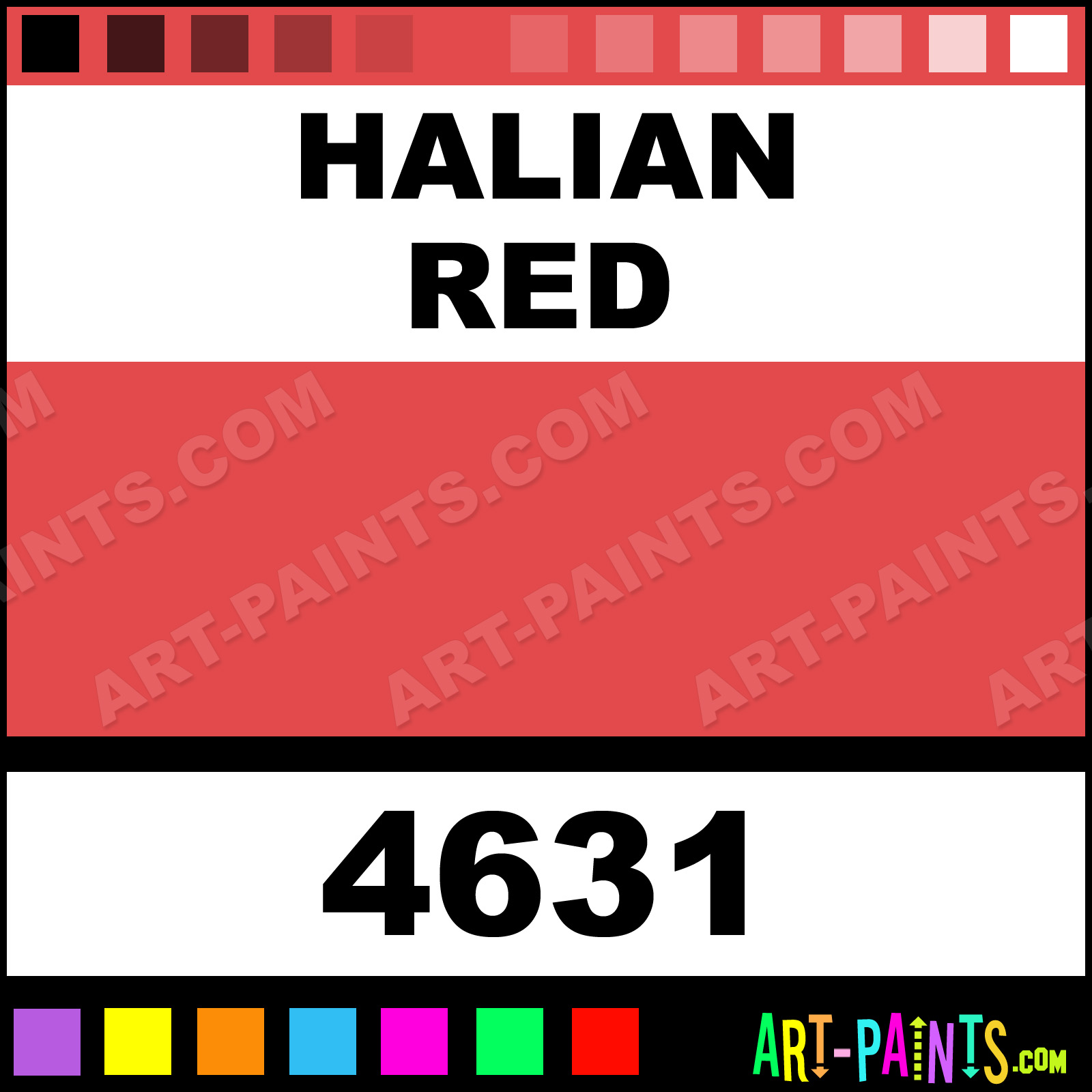 This beautiful Model Master Acrylic shade is called Halian Red, and comes from a company called Testors. Their product number, along with the HTML color code, RGB, and CMYK codes are listed below. This Beautiful Shade of Halian Red and others can be found in the Testors Model Master Art Paint Gallery! Also be sure to browse through the other wonderful Professional Color Galleries to see more of Testors Model Master Acrylic Brand Paints and other Paint Manufacturers. And as always, Paint Paint Paint! -Art-Paints.com