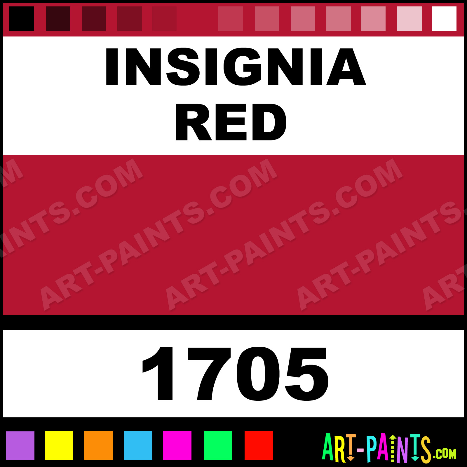 This beautiful Model Master Acrylic shade is called Insignia Red, and comes from a company called Testors. Their product number, along with the HTML color code, RGB, and CMYK codes are listed below. This Beautiful Shade of Insignia Red and others can be found in the Testors Model Master Art Paint Gallery! Also be sure to browse through the other wonderful Professional Color Galleries to see more of Testors Model Master Acrylic Brand Paints and other Paint Manufacturers. And as always, Paint Paint Paint! -Art-Paints.com
