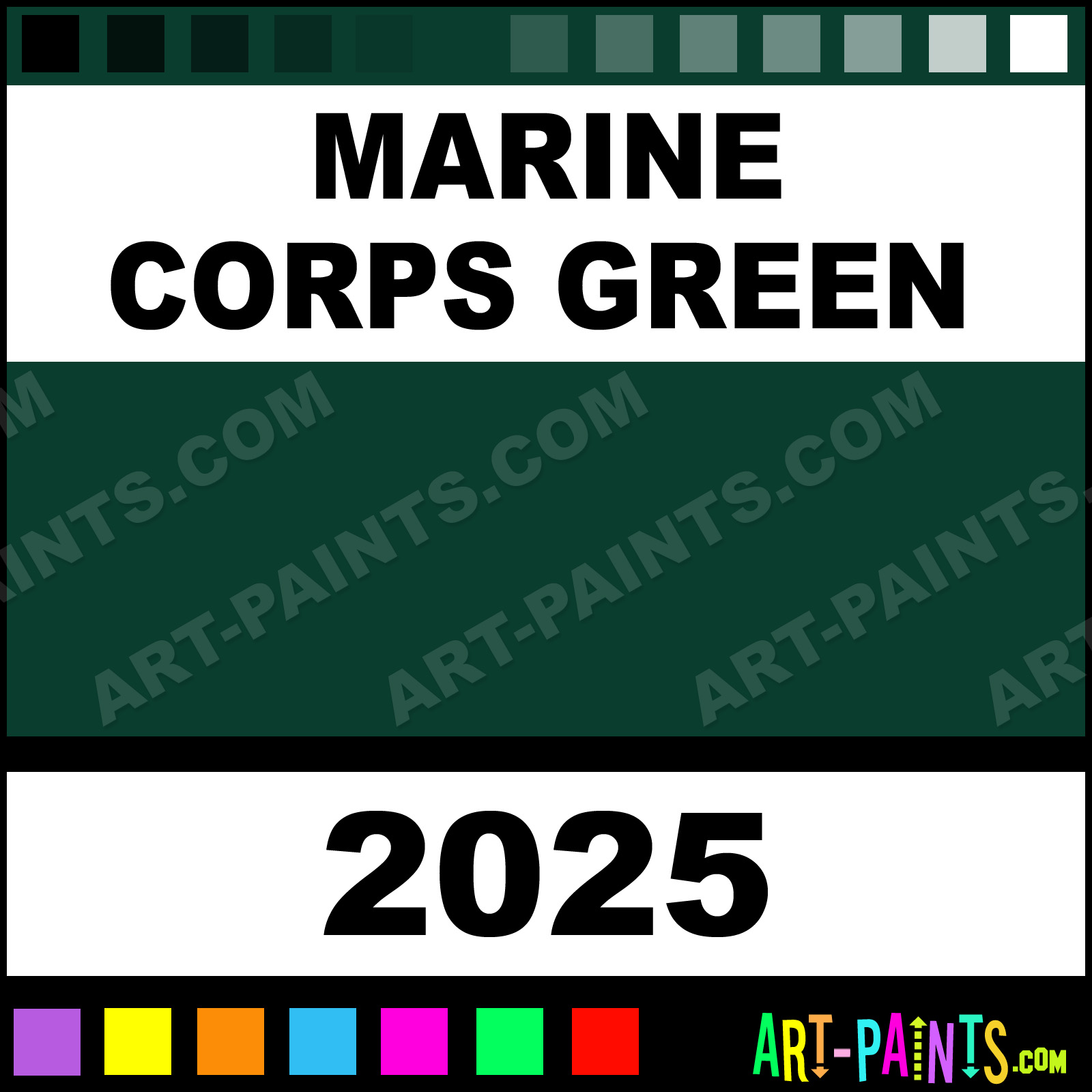 This beautiful Model Master Acrylic shade is called Marine Corps Green, and comes from a company called Testors. Their product number, along with the HTML color code, RGB, and CMYK codes are listed below. This Beautiful Shade of Marine Corps Green and others can be found in the Testors Model Master Art Paint Gallery! Also be sure to browse through the other wonderful Professional Color Galleries to see more of Testors Model Master Acrylic Brand Paints and other Paint Manufacturers. And as always, Paint Paint Paint! -Art-Paints.com