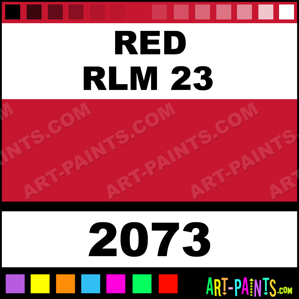 This beautiful Model Master Acrylic shade is called Red RLM 23, and comes from a company called Testors. Their product number, along with the HTML color code, RGB, and CMYK codes are listed below. This Beautiful Shade of Red RLM 23 and others can be found in the Testors Model Master Art Paint Gallery! Also be sure to browse through the other wonderful Professional Color Galleries to see more of Testors Model Master Acrylic Brand Paints and other Paint Manufacturers. And as always, Paint Paint Paint! -Art-Paints.com