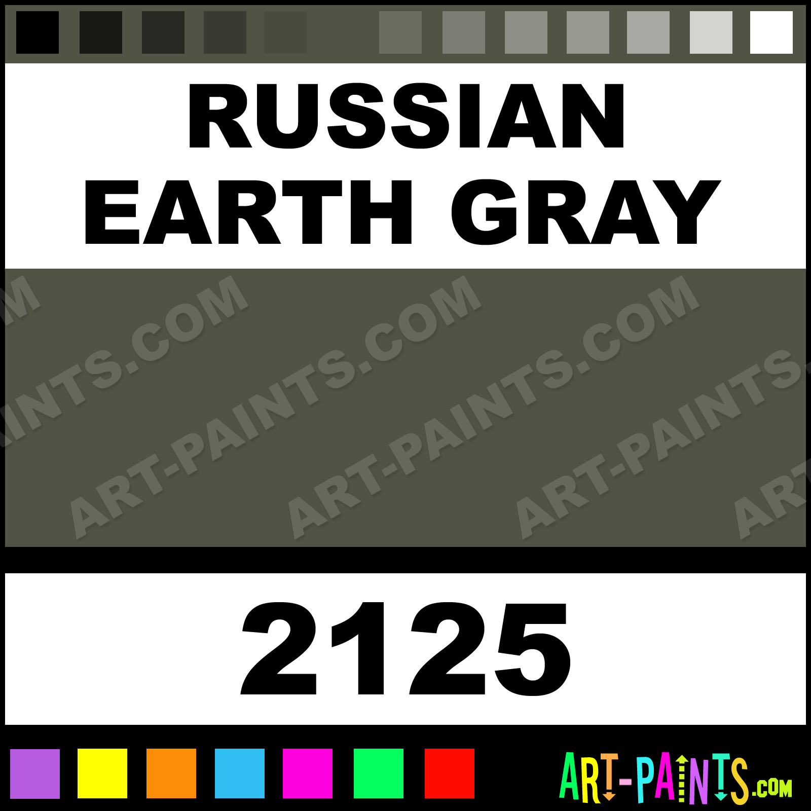 This beautiful Model Master Acrylic shade is called Russian Earth Gray, and comes from a company called Testors. Their product number, along with the HTML color code, RGB, and CMYK codes are listed below. This Beautiful Shade of Russian Earth Gray and others can be found in the Testors Model Master Art Paint Gallery! Also be sure to browse through the other wonderful Professional Color Galleries to see more of Testors Model Master Acrylic Brand Paints and other Paint Manufacturers. And as always, Paint Paint Paint! -Art-Paints.com