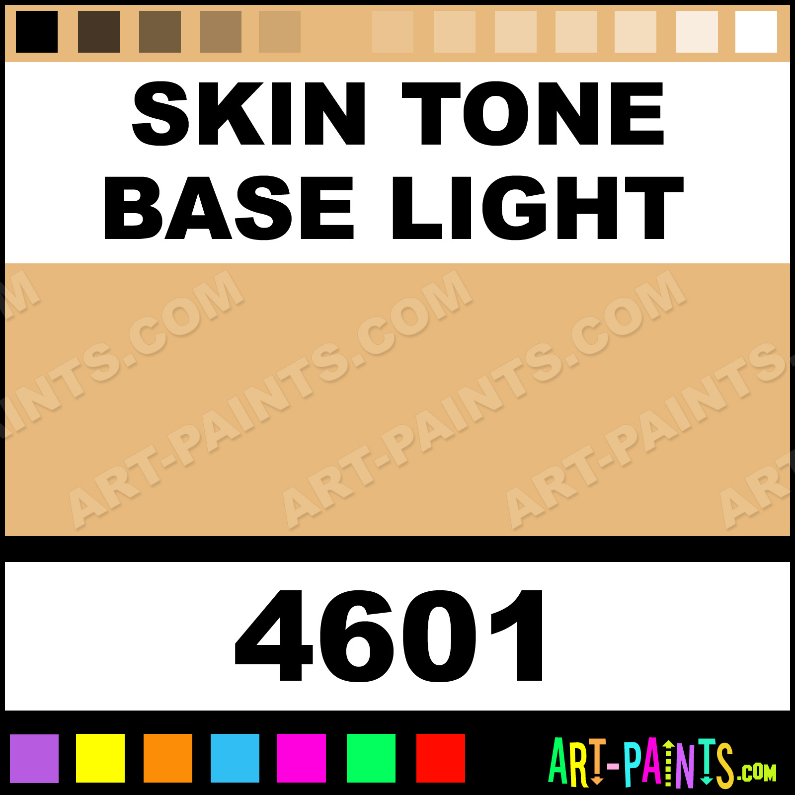 This beautiful Model Master Acrylic shade is called Skin Tone Base Light, and comes from a company called Testors. Their product number, along with the HTML color code, RGB, and CMYK codes are listed below. This Beautiful Shade of Skin Tone Base Light and others can be found in the Testors Model Master Art Paint Gallery! Also be sure to browse through the other wonderful Professional Color Galleries to see more of Testors Model Master Acrylic Brand Paints and other Paint Manufacturers. And as always, Paint Paint Paint! -Art-Paints.com