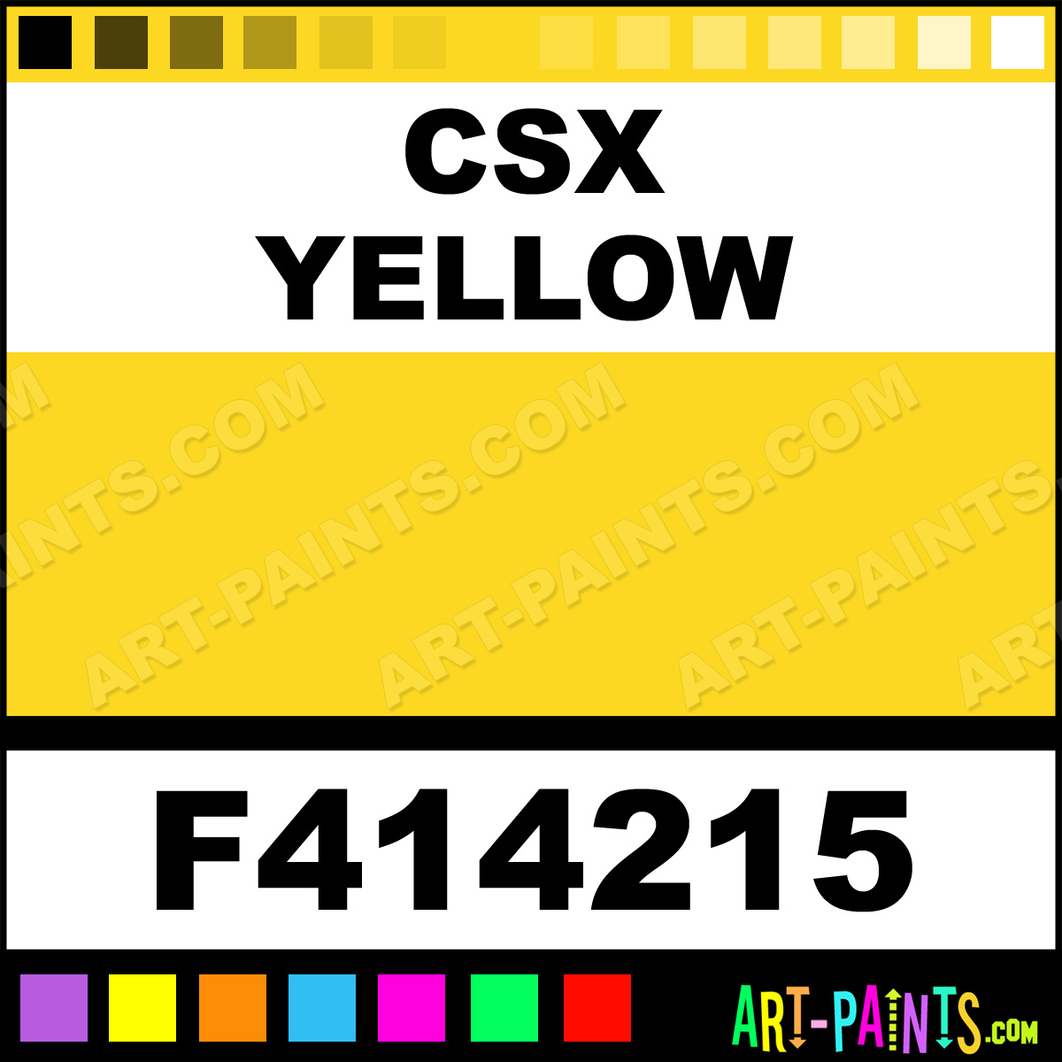This beautiful Model Acrylic shade is called CSX Yellow, and comes from a company called Testors. Their product number, along with the HTML color code, RGB, and CMYK codes are listed below. This Beautiful Shade of CSX Yellow and others can be found in the Testors Model Art Paint Gallery! Also be sure to browse through the other wonderful Professional Color Galleries to see more of Testors Model Acrylic Brand Paints and other Paint Manufacturers. And as always, Paint Paint Paint! -Art-Paints.com