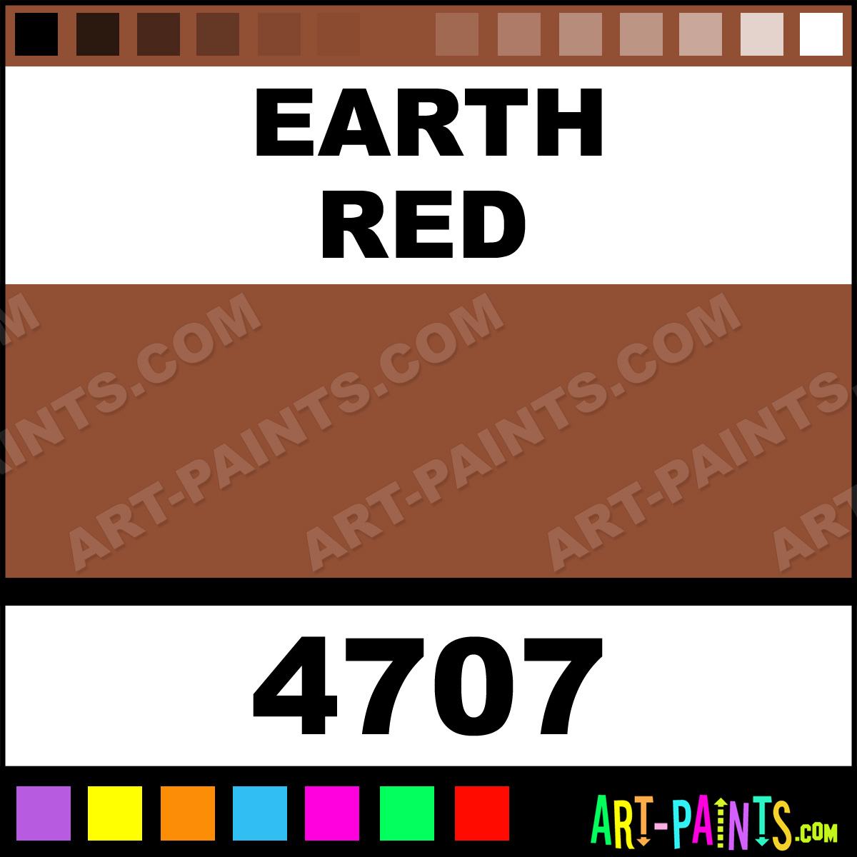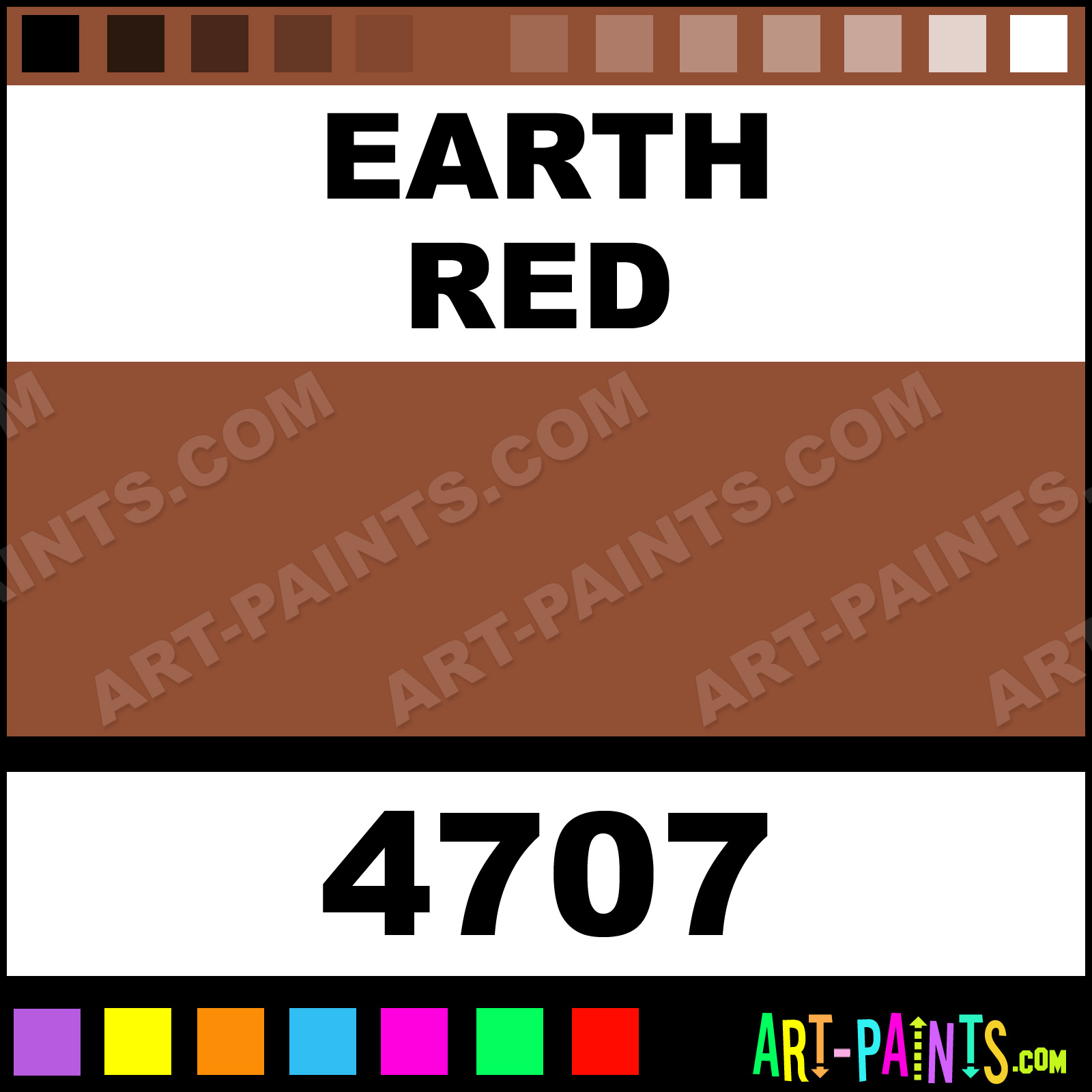 This beautiful Model Acrylic shade is called Earth Red, and comes from a company called Testors. Their product number, along with the HTML color code, RGB, and CMYK codes are listed below. This Beautiful Shade of Earth Red and others can be found in the Testors Model Art Paint Gallery! Also be sure to browse through the other wonderful Professional Color Galleries to see more of Testors Model Acrylic Brand Paints and other Paint Manufacturers. And as always, Paint Paint Paint! -Art-Paints.com