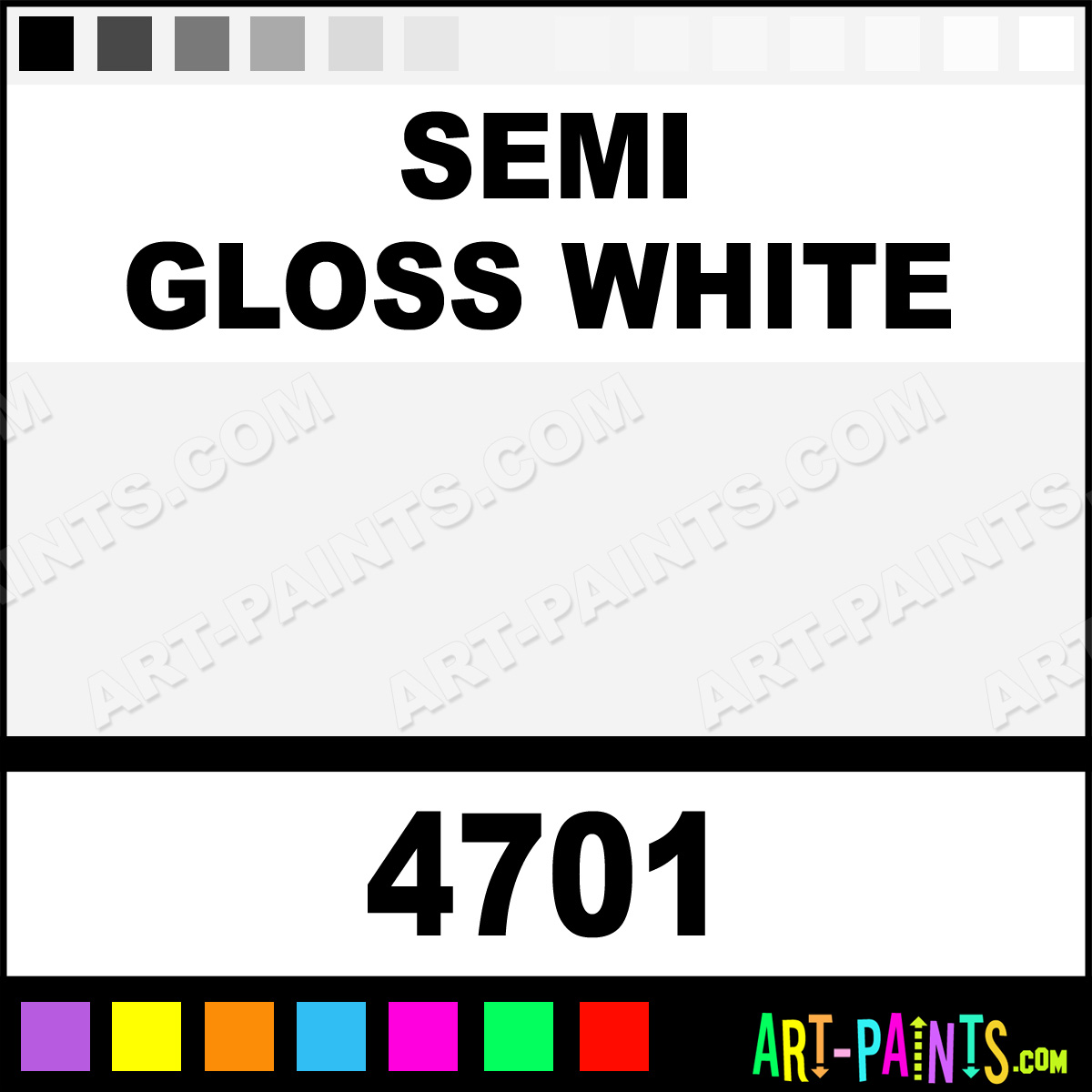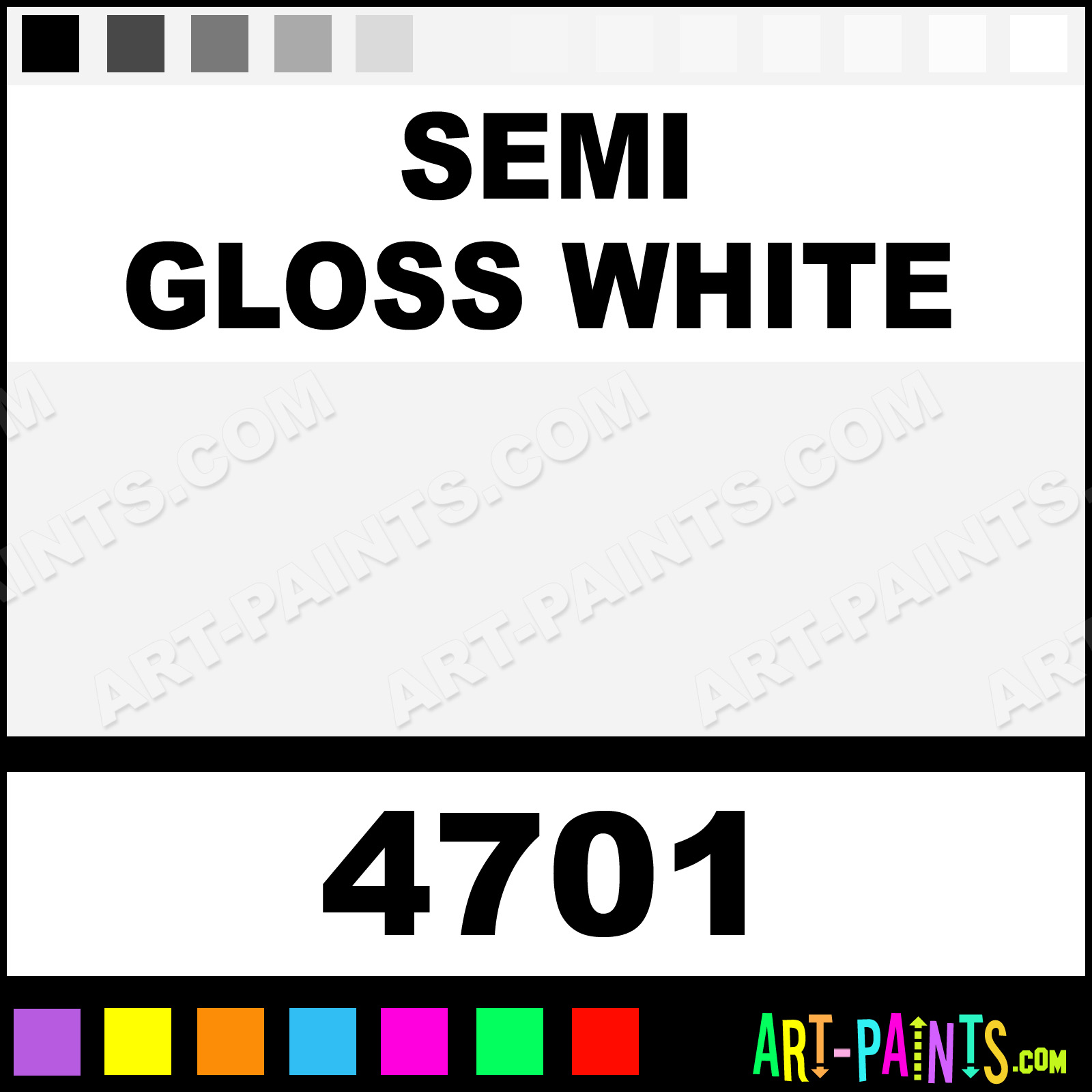 This beautiful Model Acrylic shade is called Semi Gloss White, and comes from a company called Testors. Their product number, along with the HTML color code, RGB, and CMYK codes are listed below. This Beautiful Shade of Semi Gloss White and others can be found in the Testors Model Art Paint Gallery! Also be sure to browse through the other wonderful Professional Color Galleries to see more of Testors Model Acrylic Brand Paints and other Paint Manufacturers. And as always, Paint Paint Paint! -Art-Paints.com