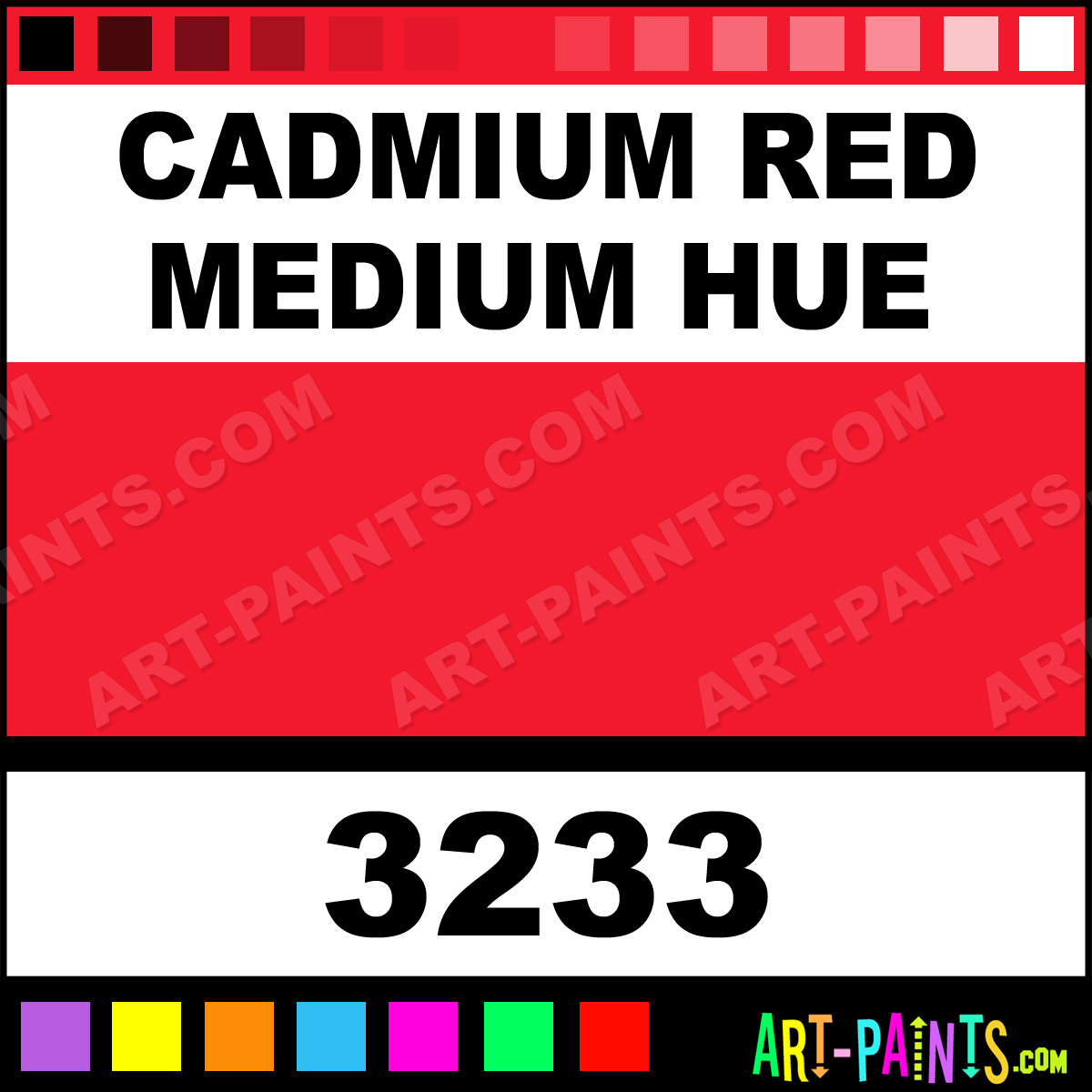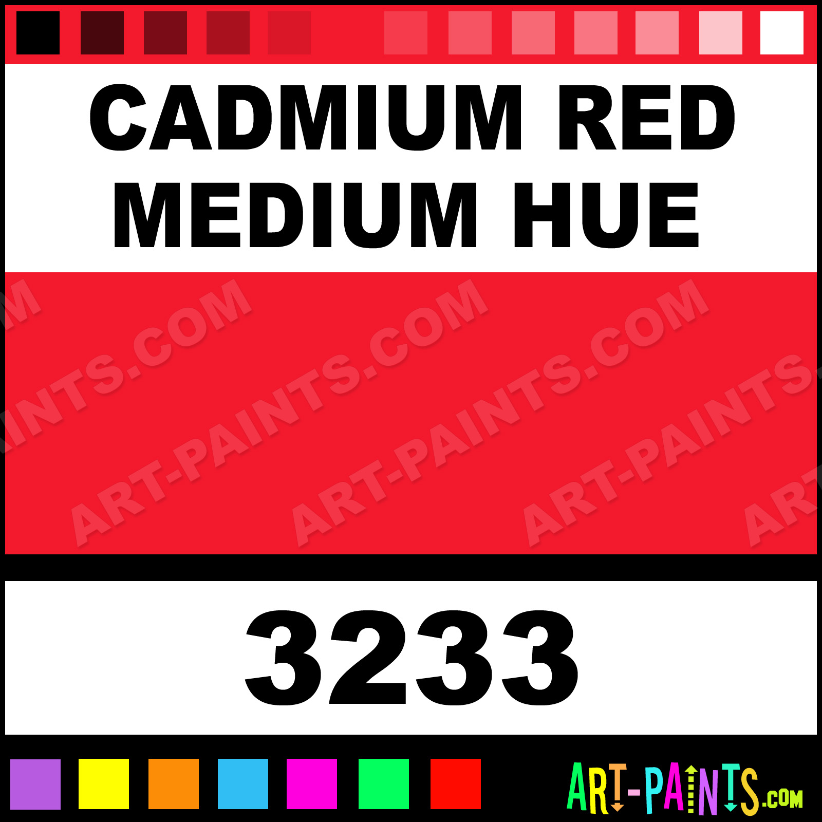 This beautiful High Viscosity Acrylic shade is called Cadmium Red Medium Hue, and comes from a company called Tri-Art. Their product number, along with the HTML color code, RGB, and CMYK codes are listed below. This Beautiful Shade of Cadmium Red Medium Hue and others can be found in the Tri-Art High Viscosity Art Paint Gallery! Also be sure to browse through the other wonderful Professional Color Galleries to see more of Tri-Art High Viscosity Acrylic Brand Paints and other Paint Manufacturers. And as always, Paint Paint Paint! -Art-Paints.com
