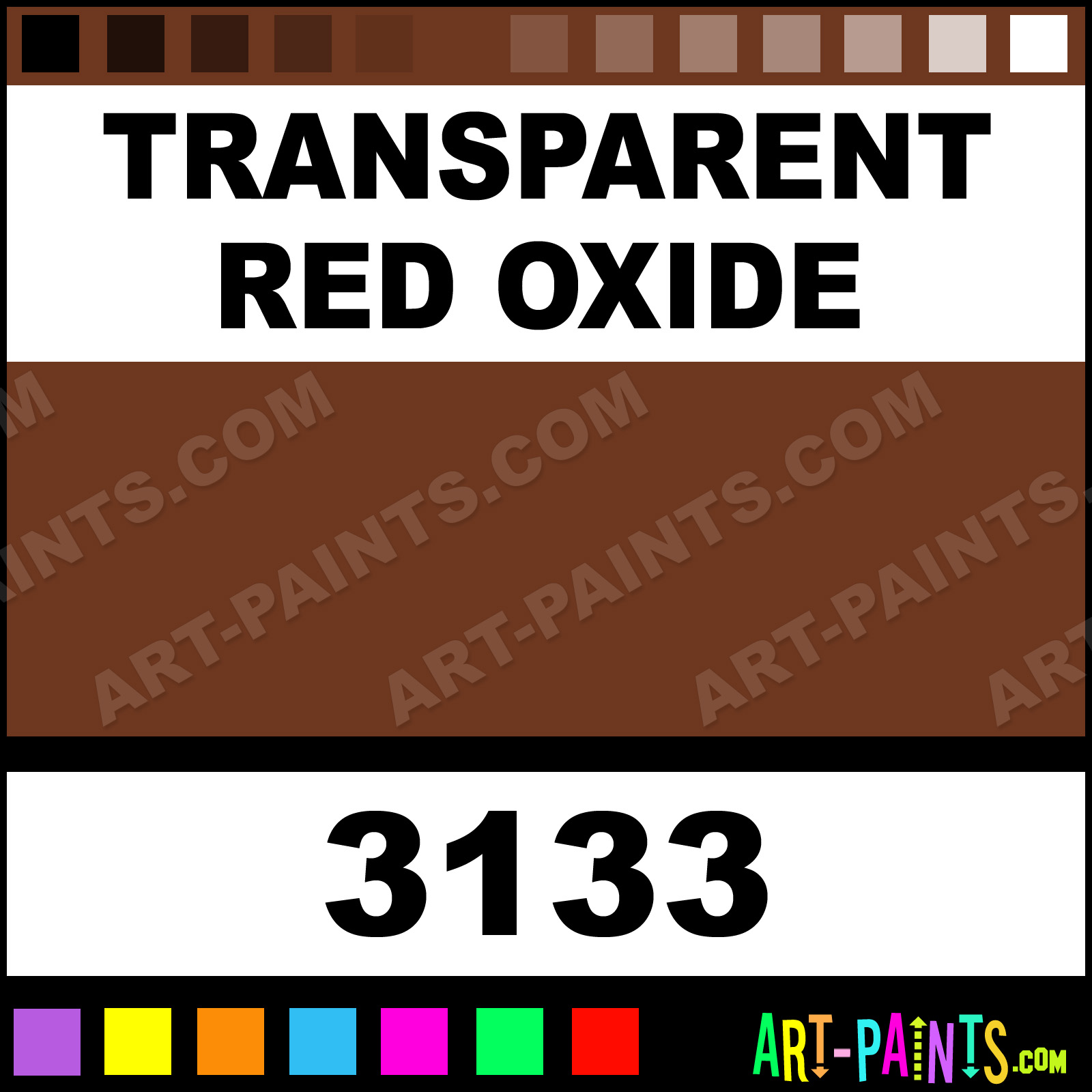 This beautiful High Viscosity Acrylic shade is called Transparent Red Oxide, and comes from a company called Tri-Art. Their product number, along with the HTML color code, RGB, and CMYK codes are listed below. This Beautiful Shade of Transparent Red Oxide and others can be found in the Tri-Art High Viscosity Art Paint Gallery! Also be sure to browse through the other wonderful Professional Color Galleries to see more of Tri-Art High Viscosity Acrylic Brand Paints and other Paint Manufacturers. And as always, Paint Paint Paint! -Art-Paints.com