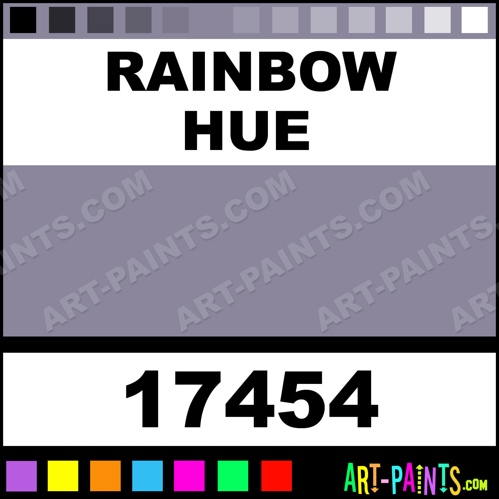 This beautiful Spectral Acrylic shade is called Rainbow, and comes from a company called Tri-Art. Their product number, along with the HTML color code, RGB, and CMYK codes are listed below. This Beautiful Shade of Rainbow and others can be found in the Tri-Art Spectral Art Paint Gallery! Also be sure to browse through the other wonderful Professional Color Galleries to see more of Tri-Art Spectral Acrylic Brand Paints and other Paint Manufacturers. And as always, Paint Paint Paint! -Art-Paints.com
