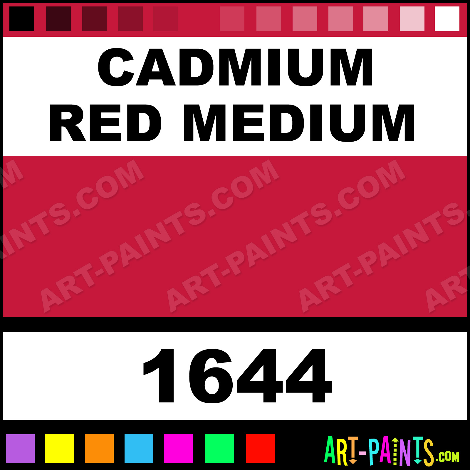 This beautiful Artist Acrylic shade is called Cadmium Red Medium, and comes from a company called Utrecht. Their product number, along with the HTML color code, RGB, and CMYK codes are listed below. This Beautiful Shade of Cadmium Red Medium and others can be found in the Utrecht Artist Art Paint Gallery! Also be sure to browse through the other wonderful Professional Color Galleries to see more of Utrecht Artist Acrylic Brand Paints and other Paint Manufacturers. And as always, Paint Paint Paint! -Art-Paints.com