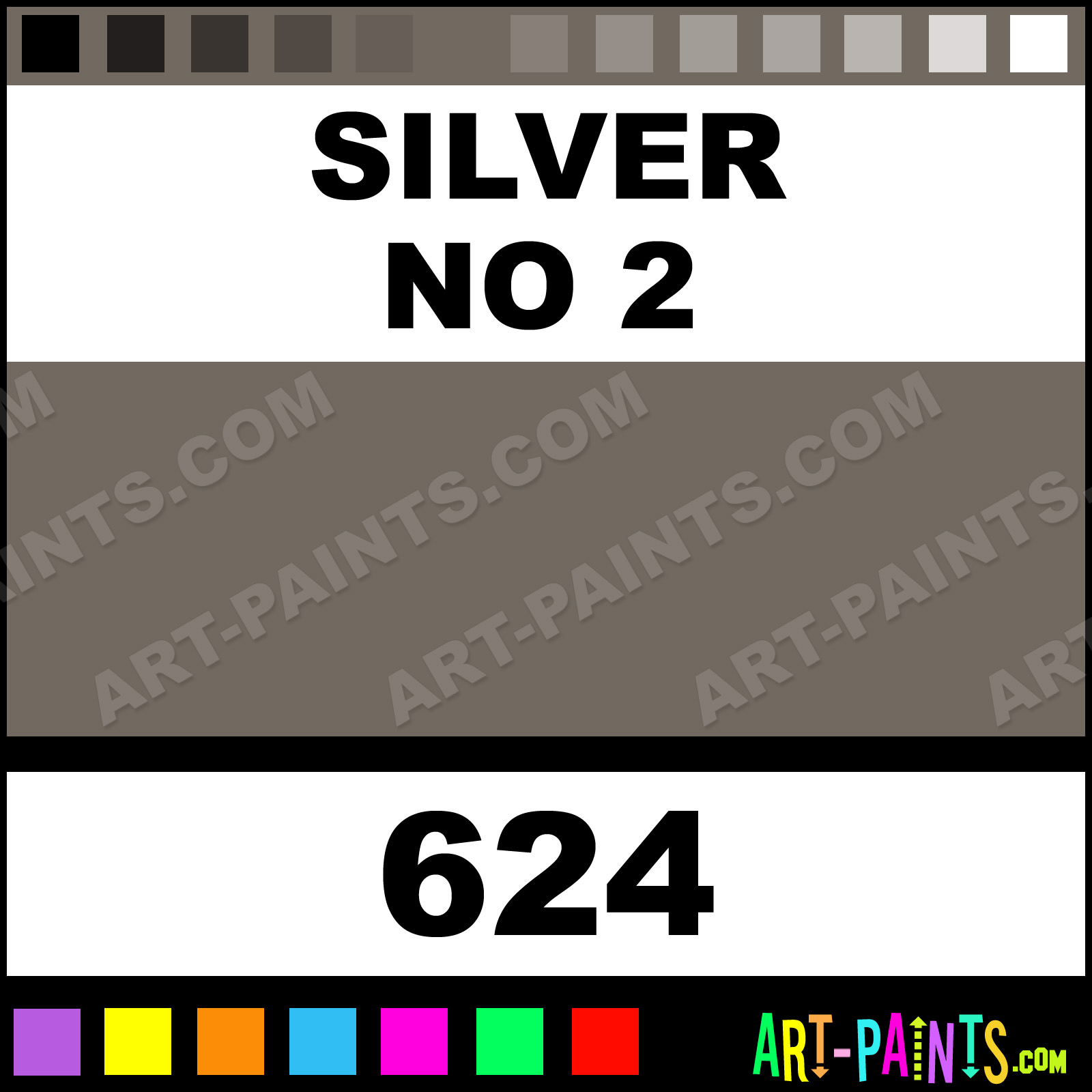 This beautiful Artists Acrylic shade is called Silver No 2, and comes from a company called Winsor and Newton. Their product number, along with the HTML color code, RGB, and CMYK codes are listed below. This Beautiful Shade of Silver No 2 and others can be found in the Winsor and Newton Artists Art Paint Gallery! Also be sure to browse through the other wonderful Professional Color Galleries to see more of Winsor and Newton Artists Acrylic Brand Paints and other Paint Manufacturers. And as always, Paint Paint Paint! -Art-Paints.com