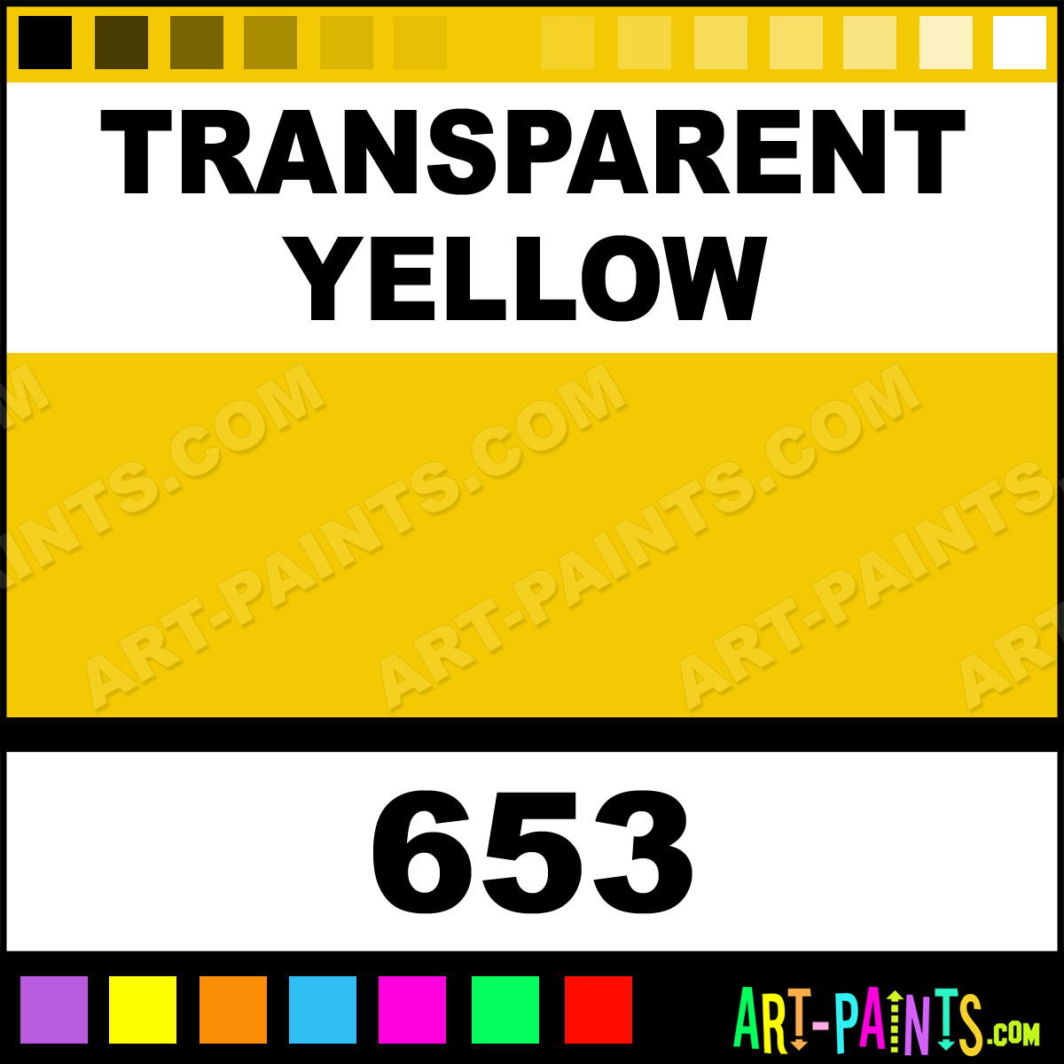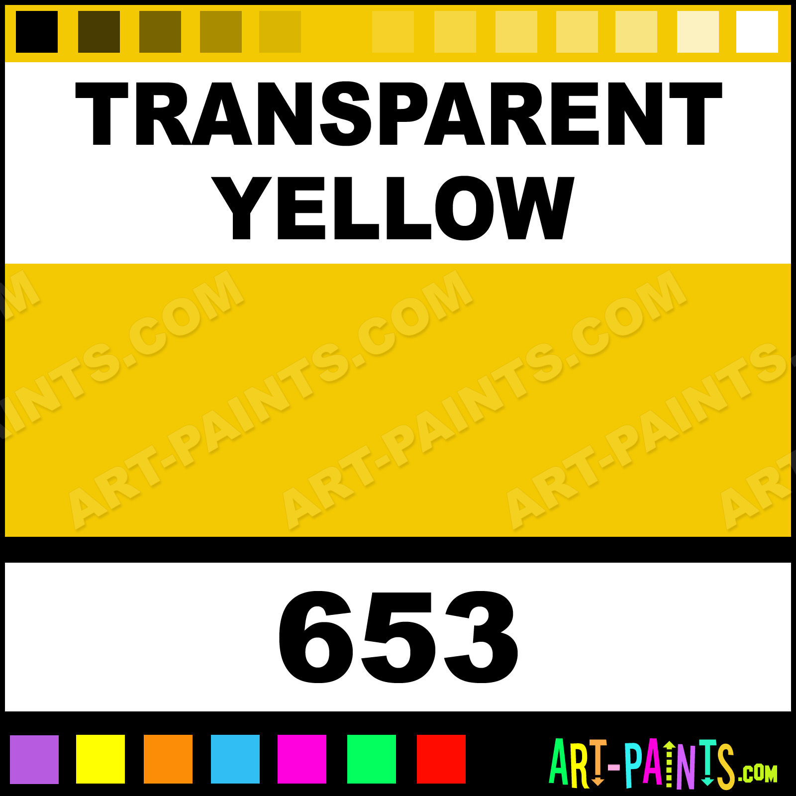 This beautiful Finity Acrylic shade is called Transparent Yellow, and comes from a company called Winsor and Newton. Their product number, along with the HTML color code, RGB, and CMYK codes are listed below. This Beautiful Shade of Transparent Yellow and others can be found in the Winsor and Newton Finity Art Paint Gallery! Also be sure to browse through the other wonderful Professional Color Galleries to see more of Winsor and Newton Finity Acrylic Brand Paints and other Paint Manufacturers. And as always, Paint Paint Paint! -Art-Paints.com