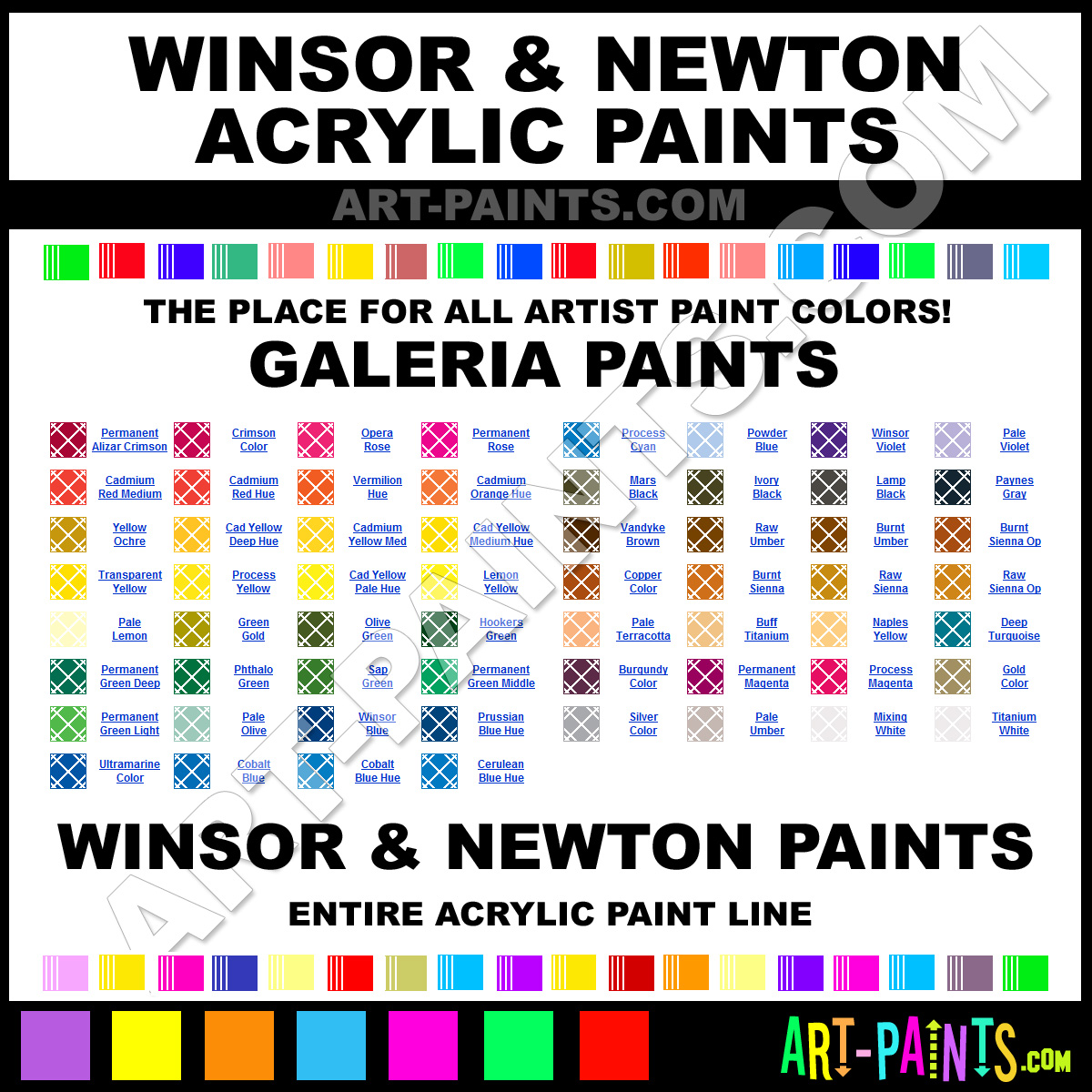 Please note that the Art Supply Retailers affiliated here DO NOT carry all of the paints listed!