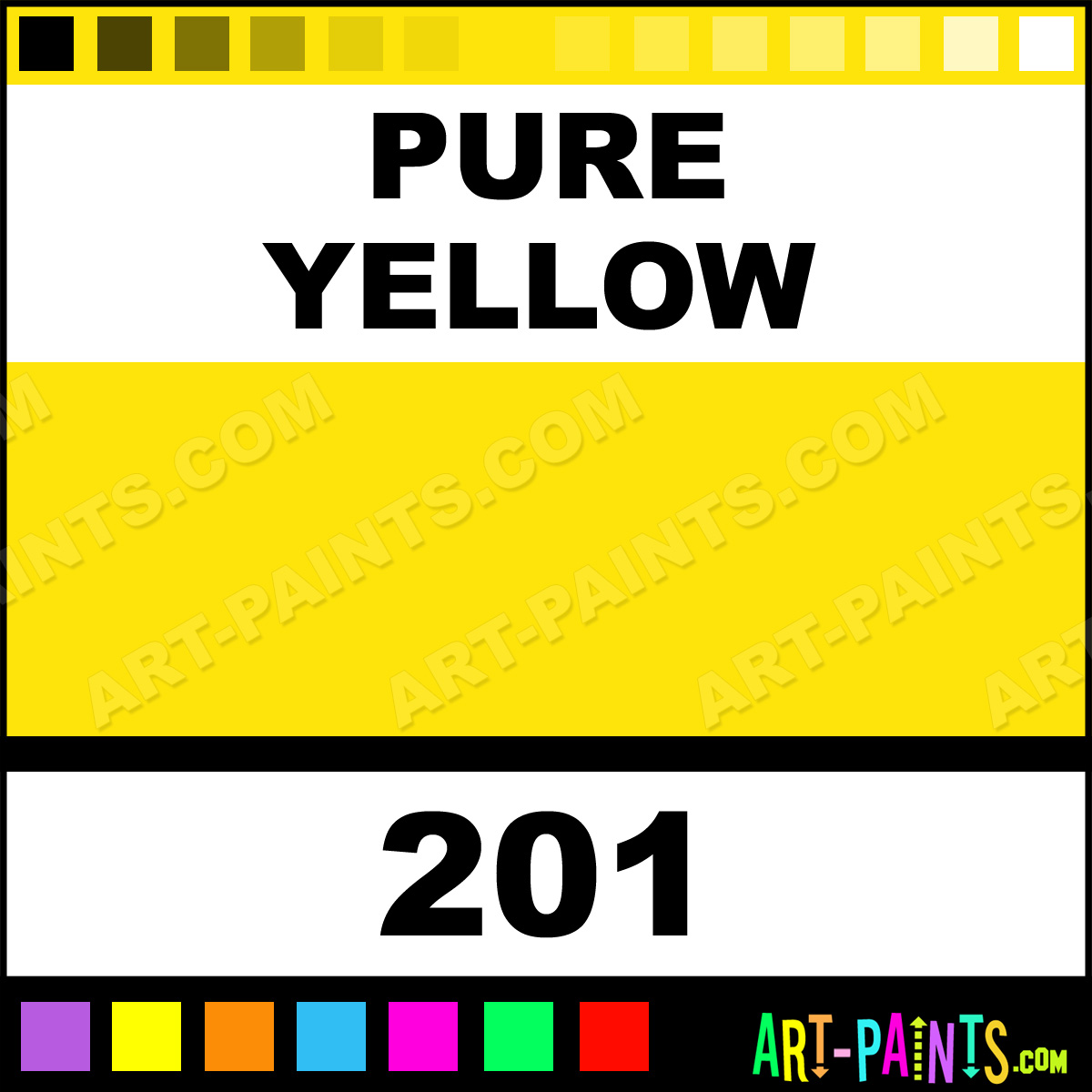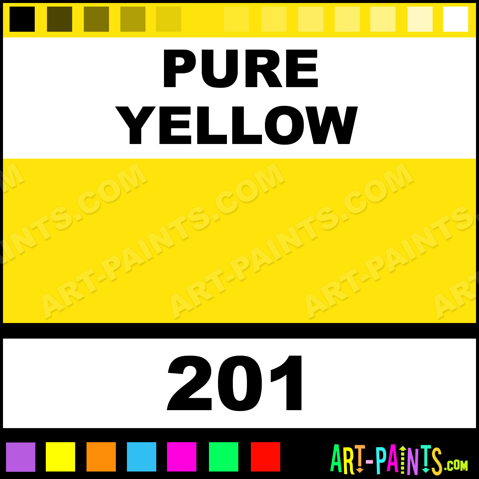 This beautiful Ecological Acrylic shade is called Pure Yellow, and comes from a company called Wyland. Their product number, along with the HTML color code, RGB, and CMYK codes are listed below. This Beautiful Shade of Pure Yellow and others can be found in the Wyland Ecological Art Paint Gallery! Also be sure to browse through the other wonderful Professional Color Galleries to see more of Wyland Ecological Acrylic Brand Paints and other Paint Manufacturers. And as always, Paint Paint Paint! -Art-Paints.com