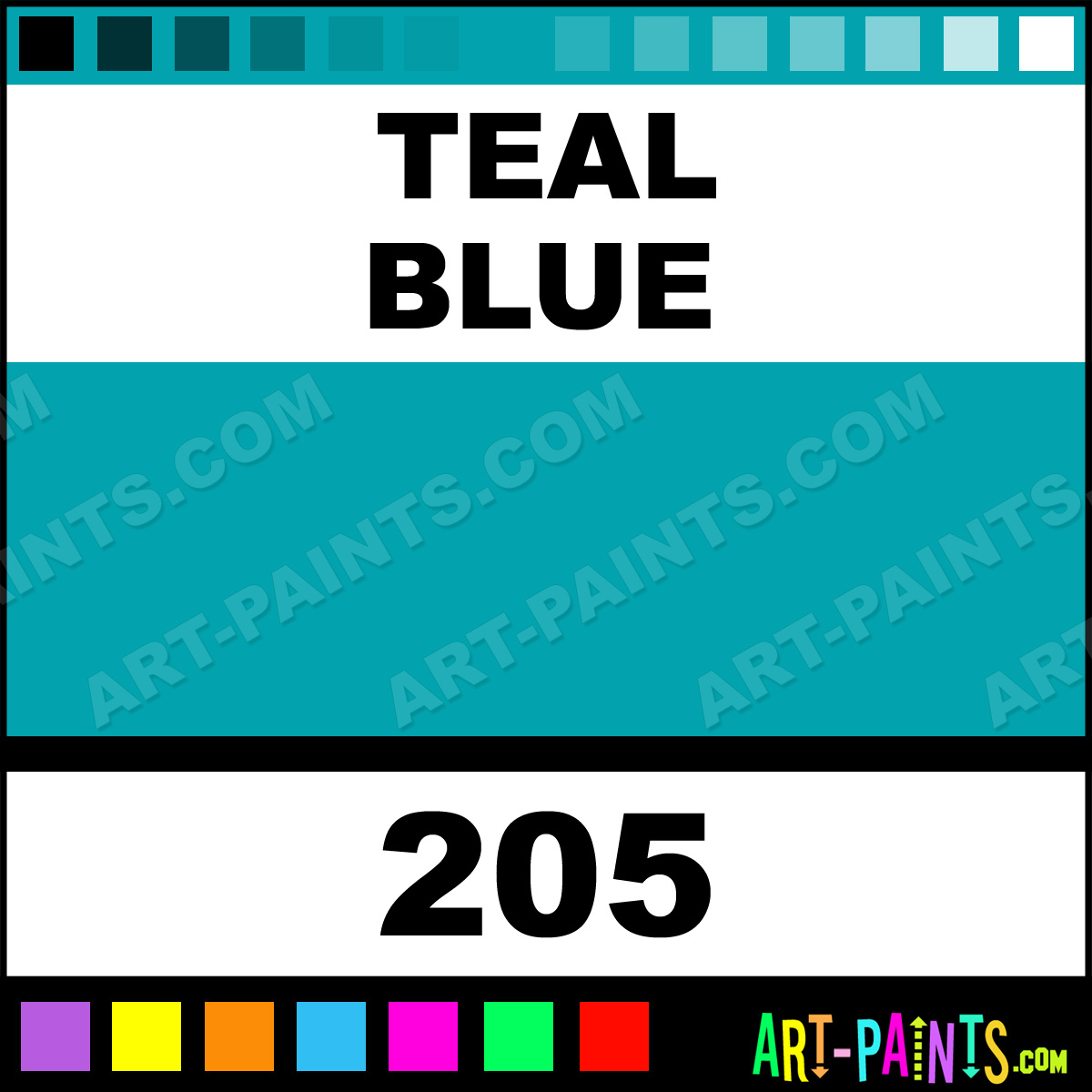 This beautiful Ecological Acrylic shade is called Teal Blue, and comes from a company called Wyland. Their product number, along with the HTML color code, RGB, and CMYK codes are listed below. This Beautiful Shade of Teal Blue and others can be found in the Wyland Ecological Art Paint Gallery! Also be sure to browse through the other wonderful Professional Color Galleries to see more of Wyland Ecological Acrylic Brand Paints and other Paint Manufacturers. And as always, Paint Paint Paint! -Art-Paints.com